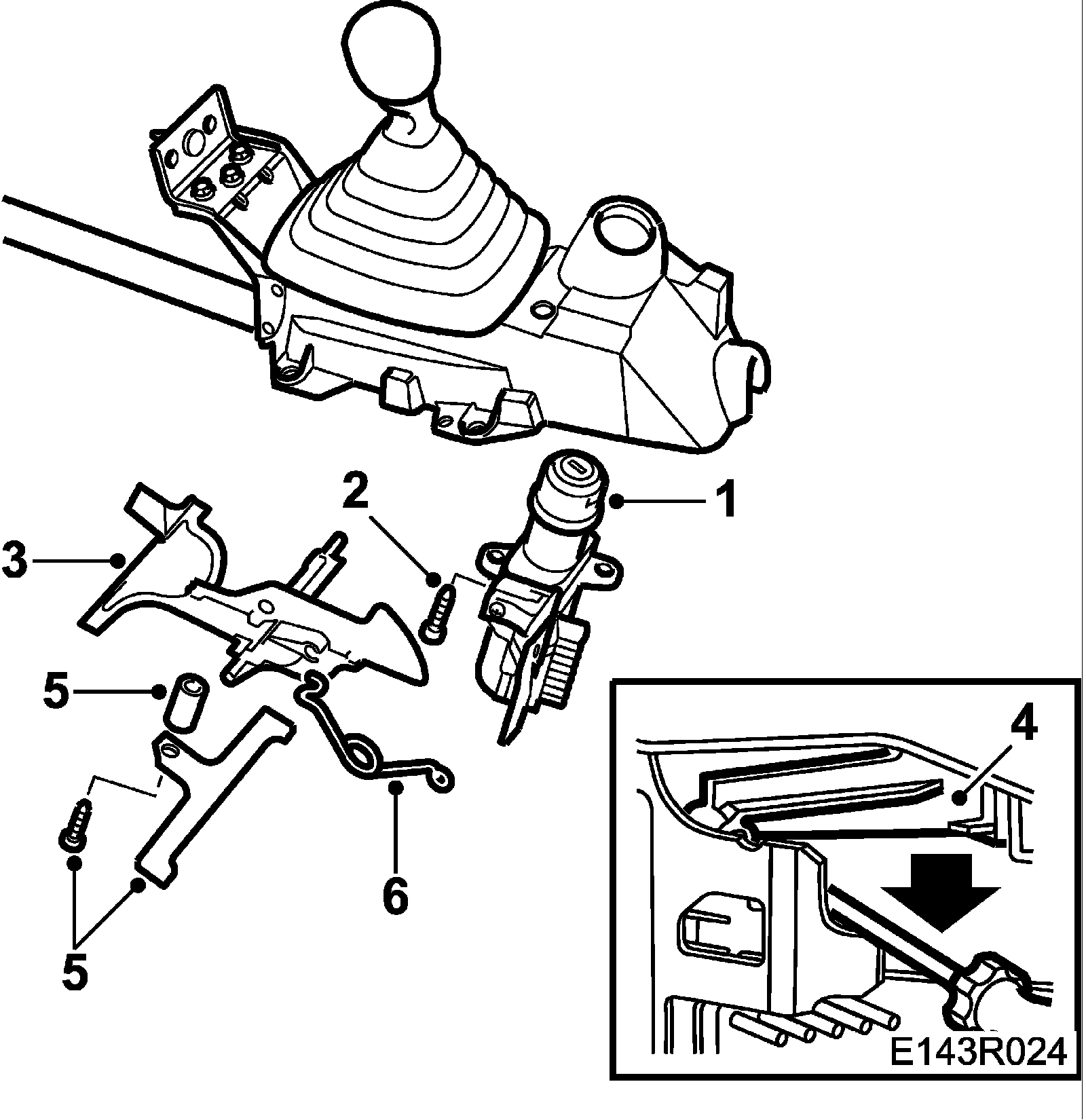 7. Adjust the position of the lock plate with the screw on the lock plate holder so that it is level with the lug in the gear lever housing.