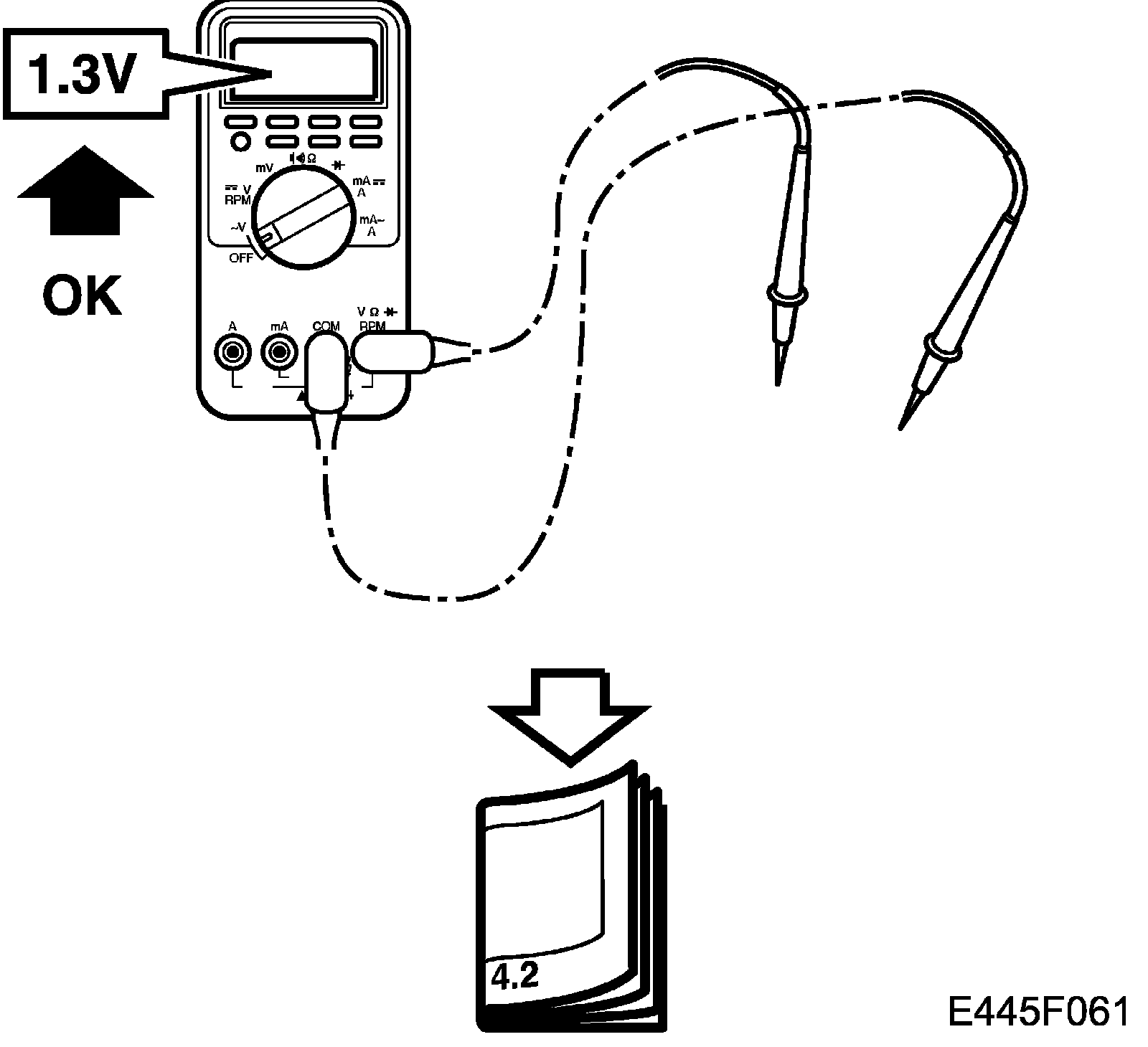 ^ If any reading is not OK, consult the wiring diagram to trace the leads, connectors or components which ought to be checked more thoroughly.
