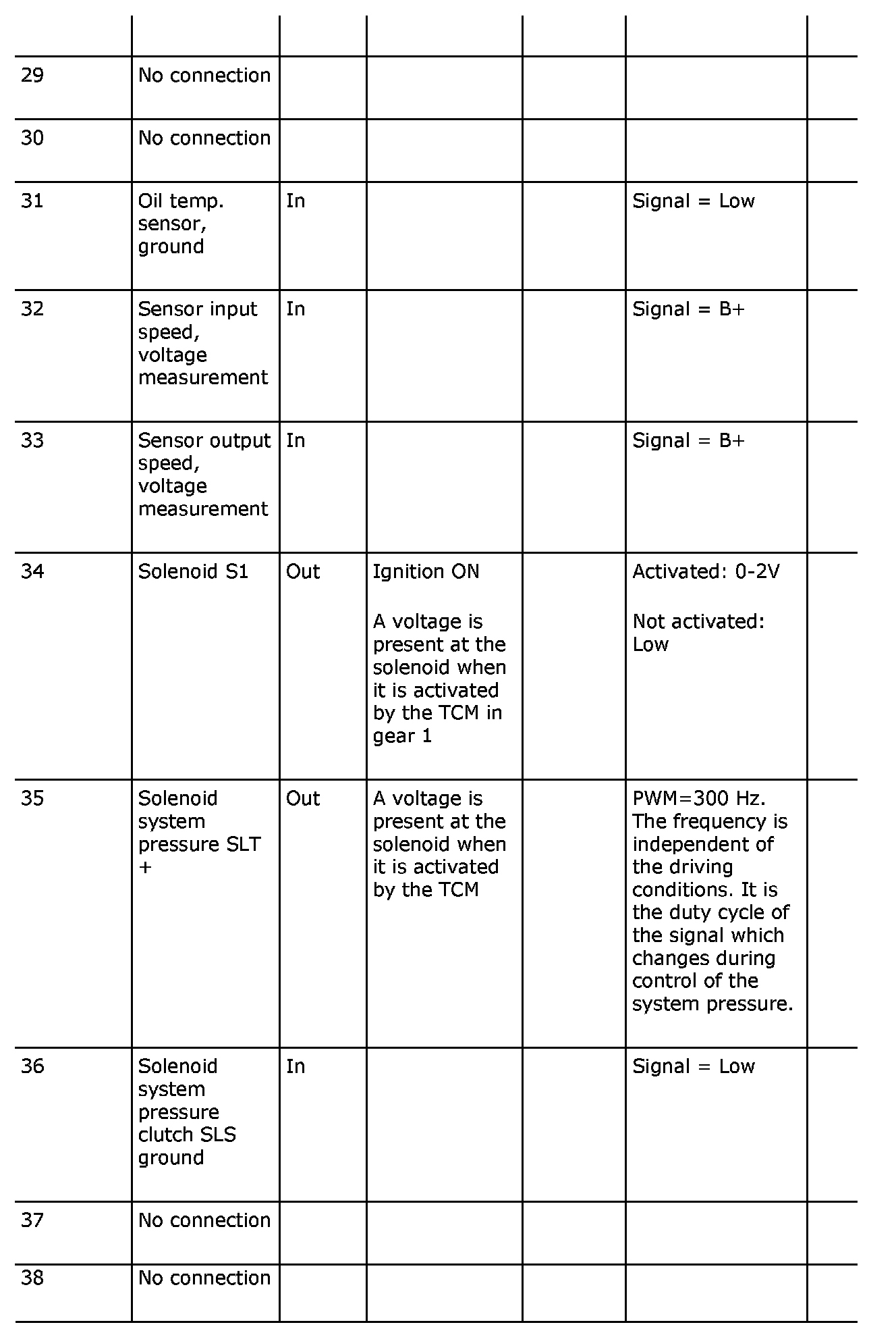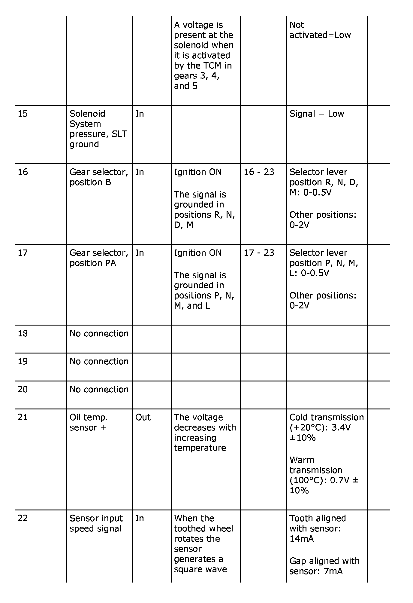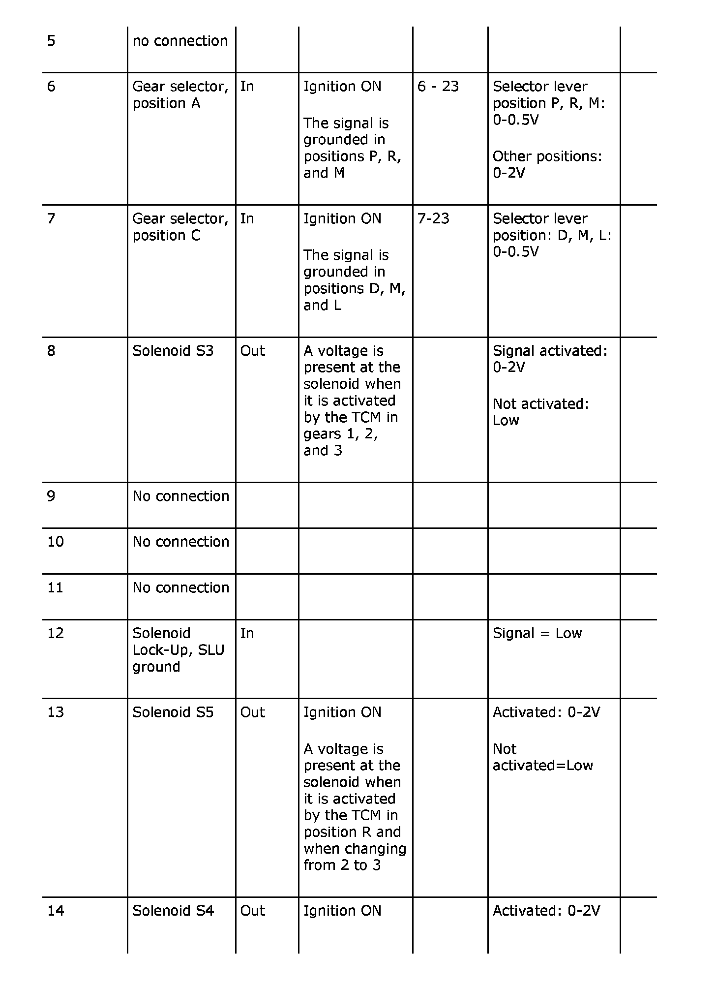 The following pages contain specified values and directions for measuring signals and levels on the automatic transmission control module.