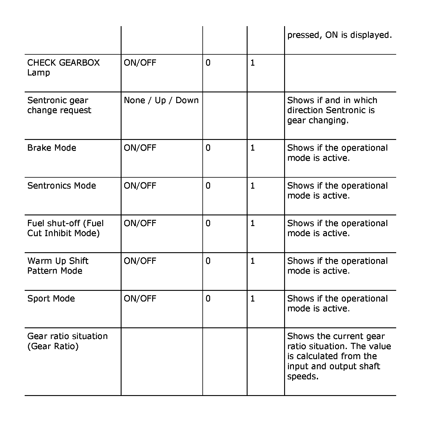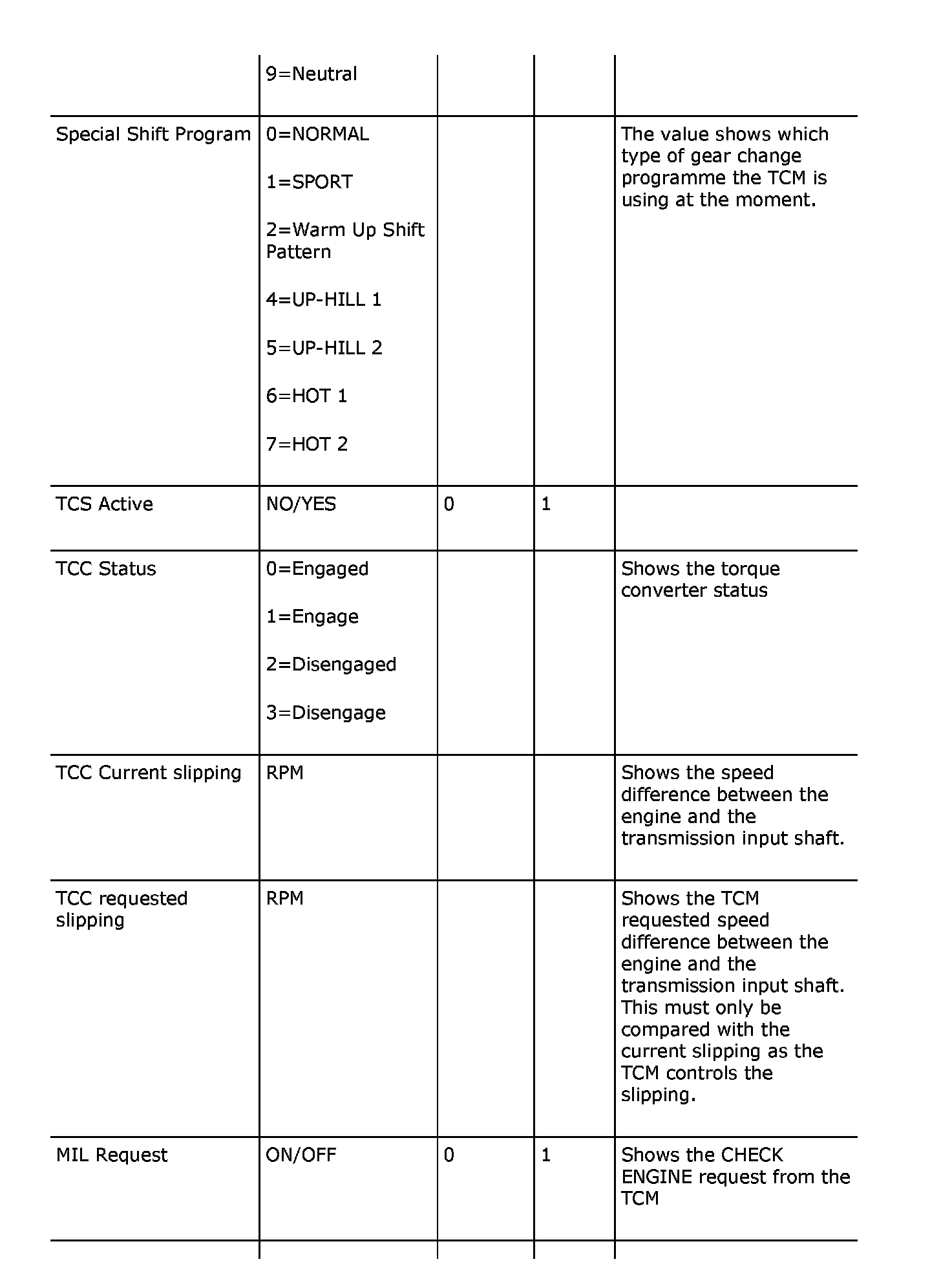 Menu "Read Values"