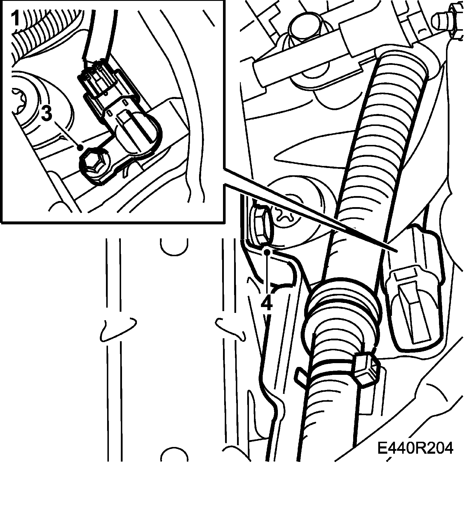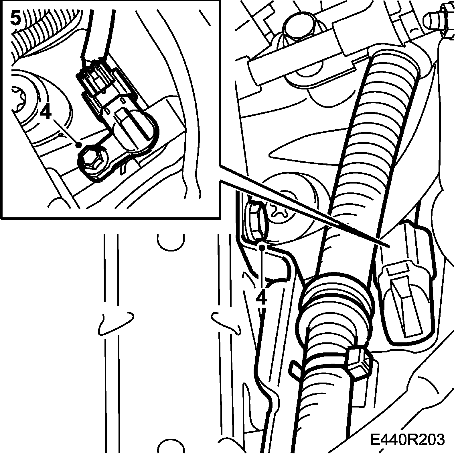 4. Clean the area round the sensor. Remove the sensor's retaining bolt.