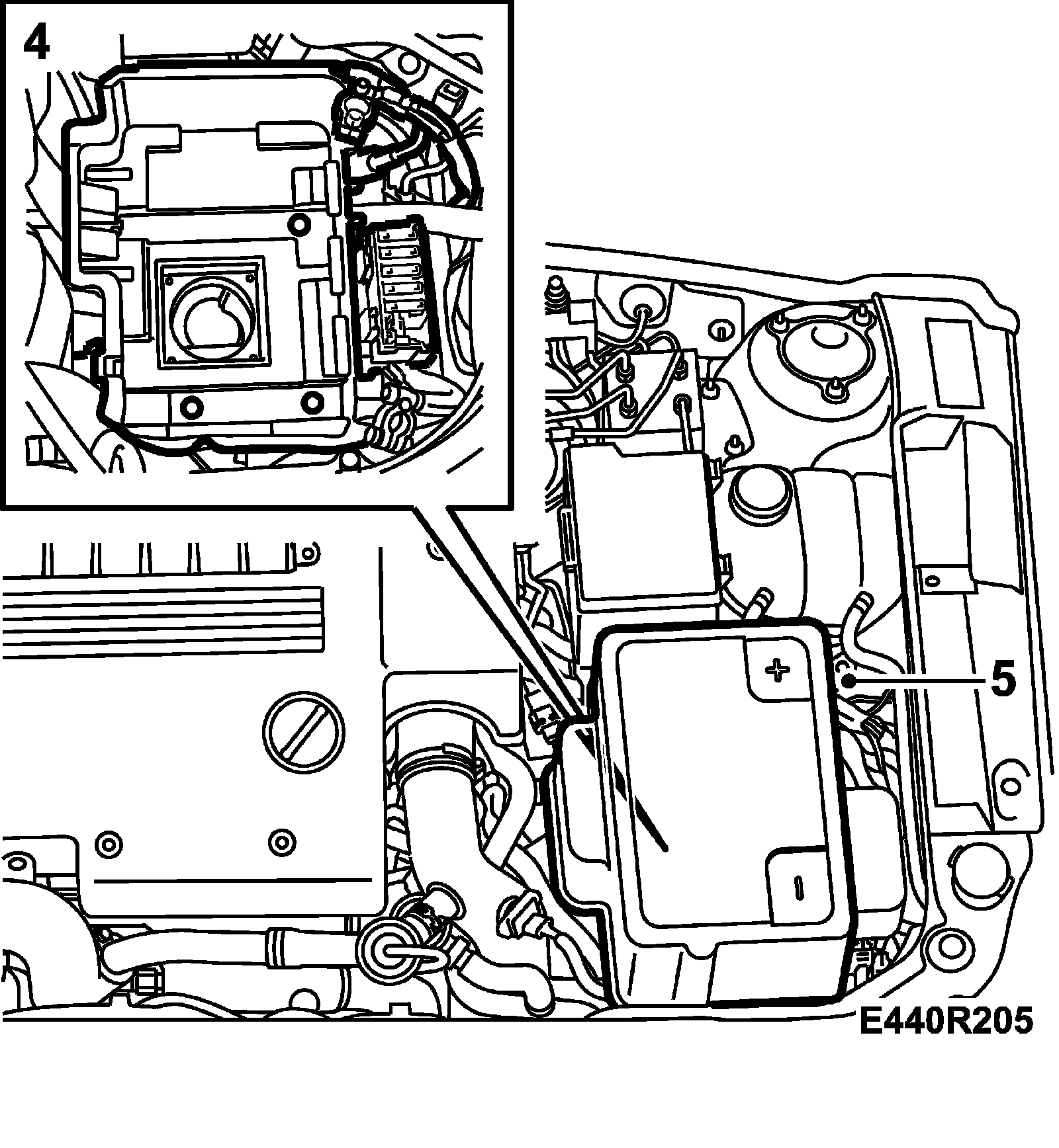 5. Fit the battery tray, MAXI fuse board, battery and battery cover.