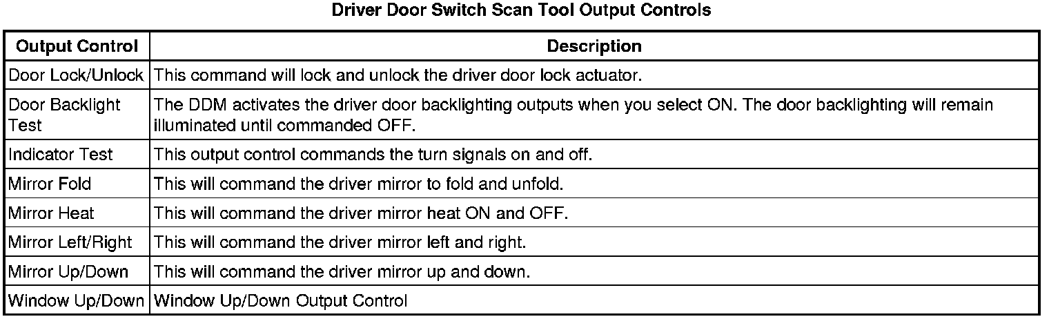 Door Lock Control Module Scan Tool Information (Driver Door Switch)