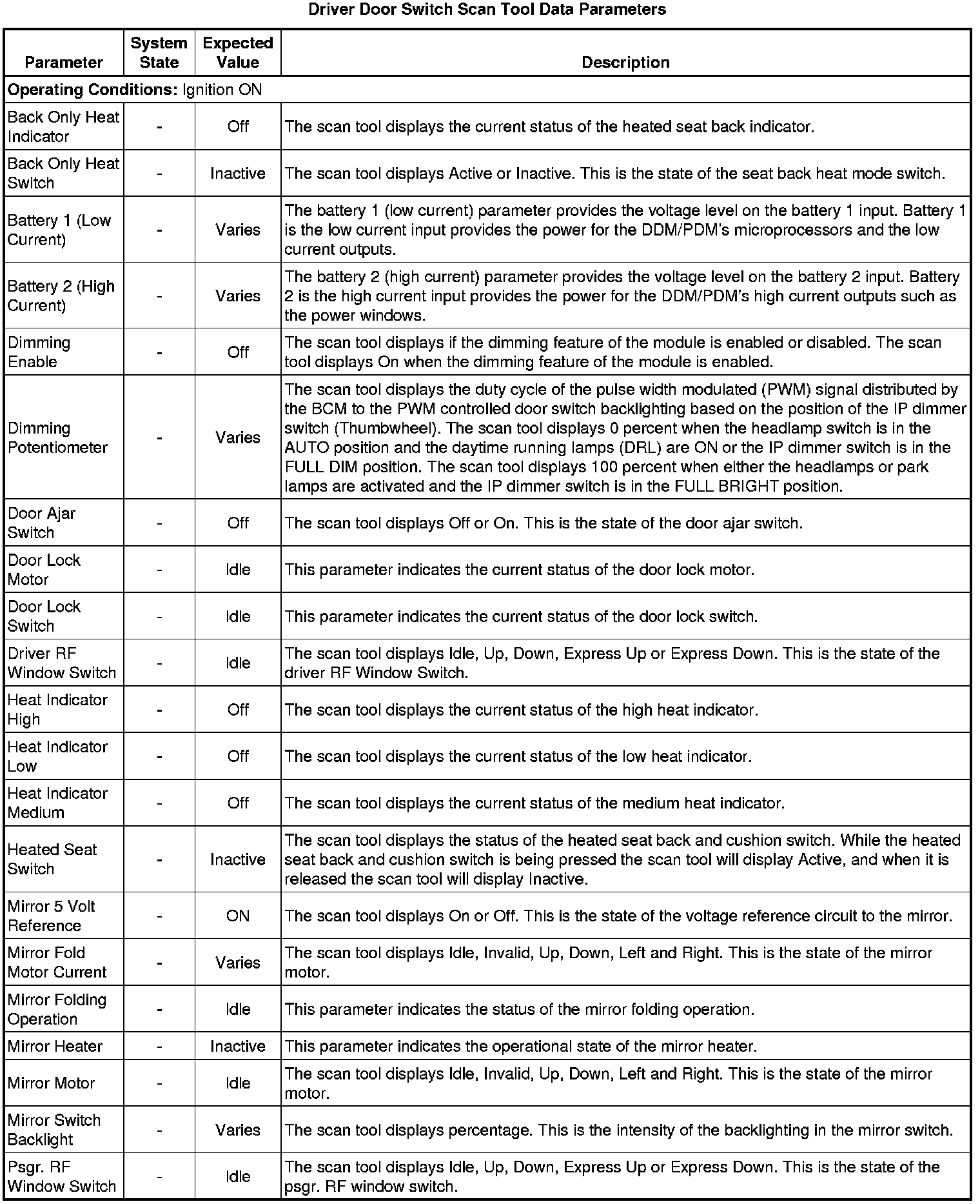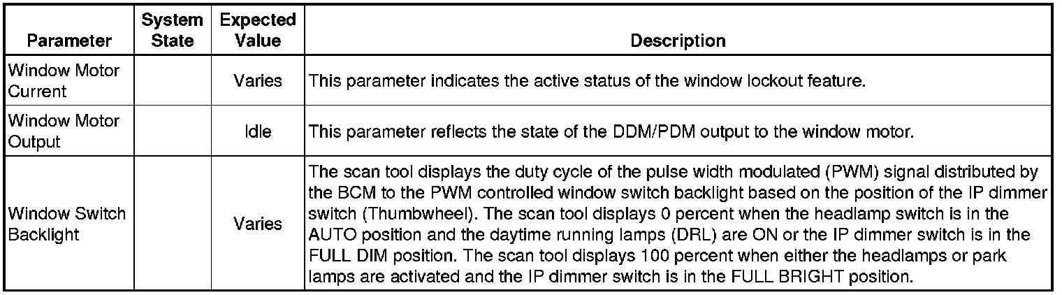 Door Lock Control Module Scan Tool Information (Passenger Door Switch)