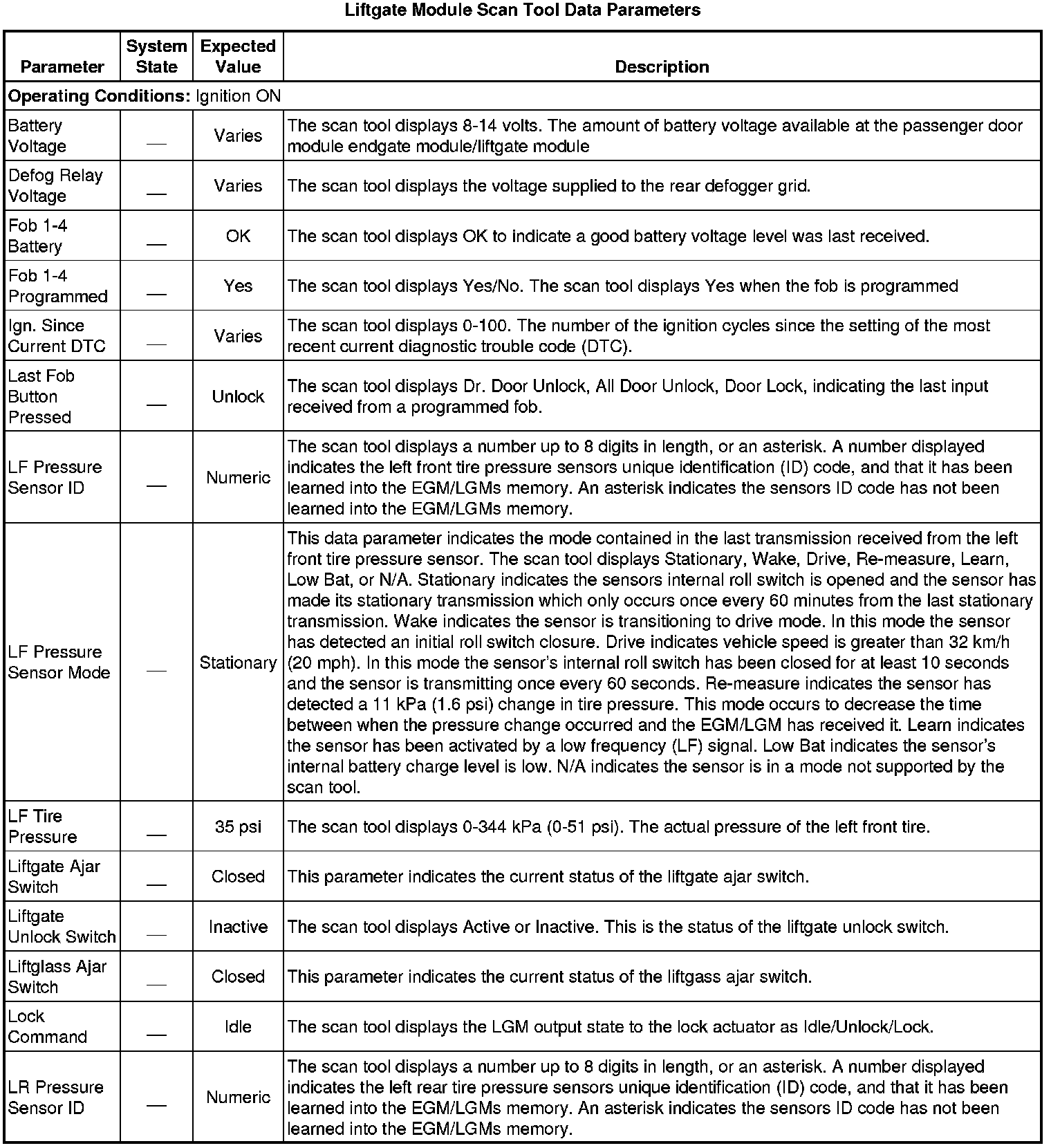Liftgate Close Actuator Motor Control Module Scan Tool Information
