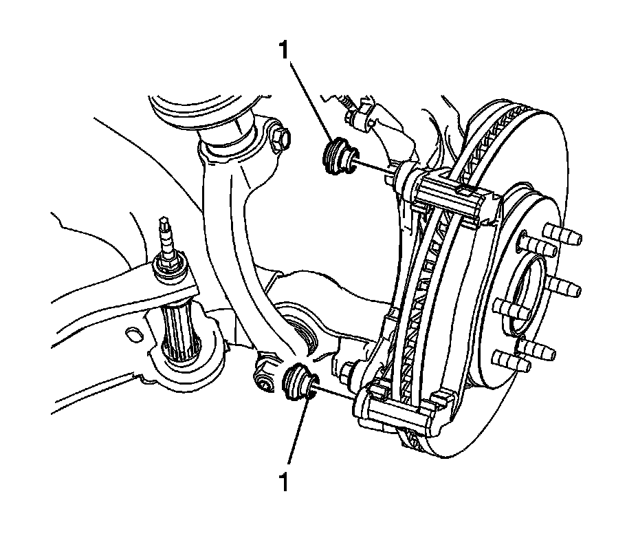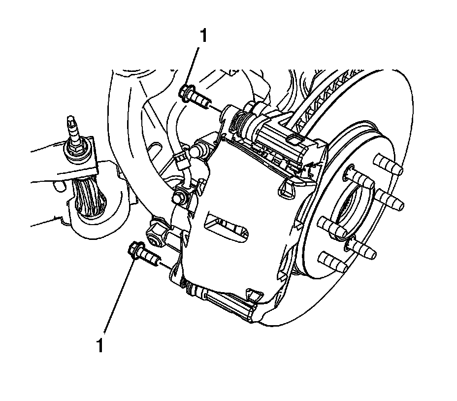 3. Remove the brake caliper guide pin bolts (1).
