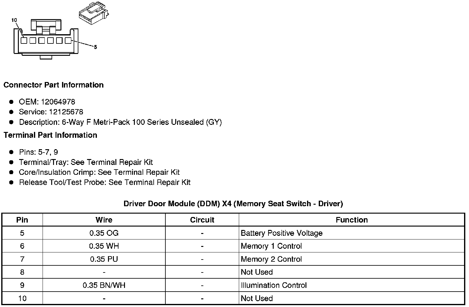 Driver Door Module (DDM) X4 (Memory Seat Switch - Driver)
