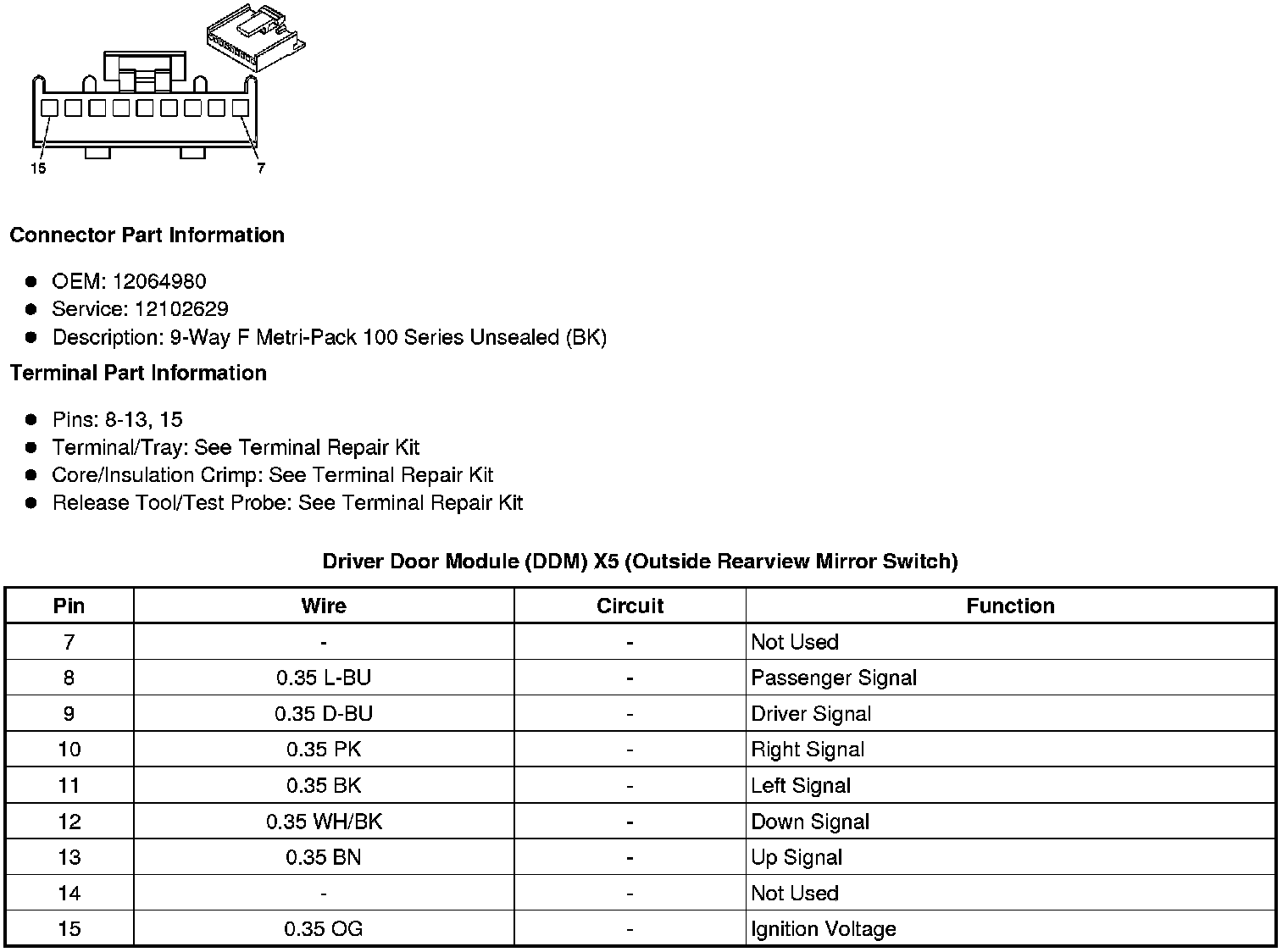 Driver Door Module (DDM) X5 (Outside Rearview Mirror Switch)