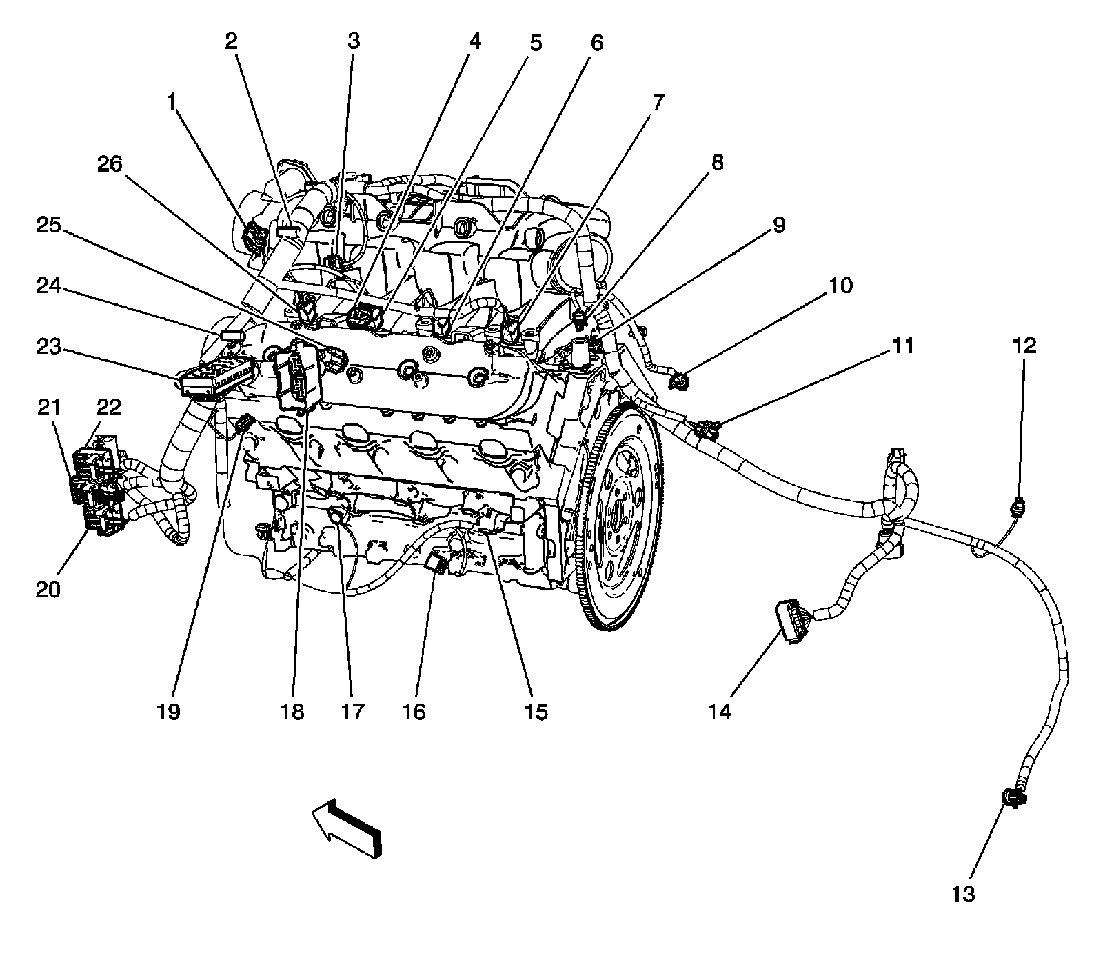 Engine Harness Routing - Left Rear (5.3L)
