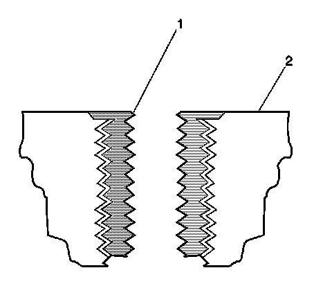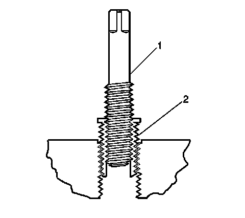 17. Apply threadlock LOCTITE(TM) 277, J 42385-109 (1), or equivalent, to the insert OD threads (2).