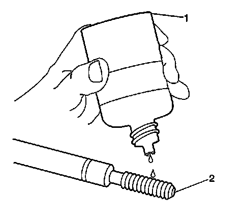 15. Lubricate the threads of the installer tool (2) with the driver oil (1).