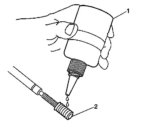 9. Lubricate the threads of the installer tool (2) with the driver oil (1).