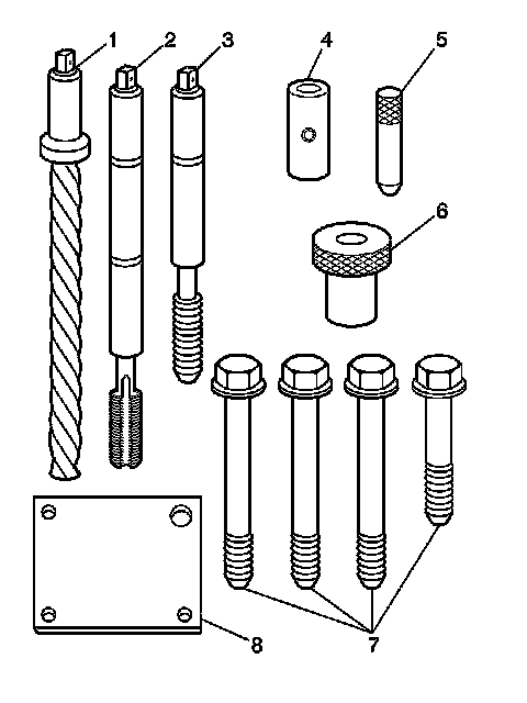 * The use of a cutting type fluid GM P/N 1052864 (Canadian P/N 992881), WD 40(R), or equivalent, is recommended when performing the drilling, counterboring, and tapping procedures.