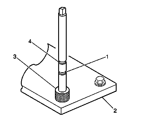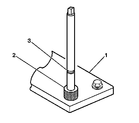 2. Install the fixture plate (3), bolts (1), and bushing (2) onto the engine block deck.