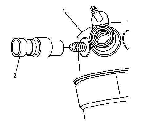 2. Install the A/C low pressure switch (2) to the accumulator (1). Tighten the A/C low pressure switch to 4.8 Nm (42 in. lbs.)