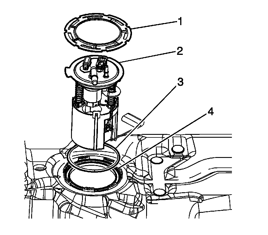 4. Remove the fuel sender assembly (2) and seal (3). Discard the seal.