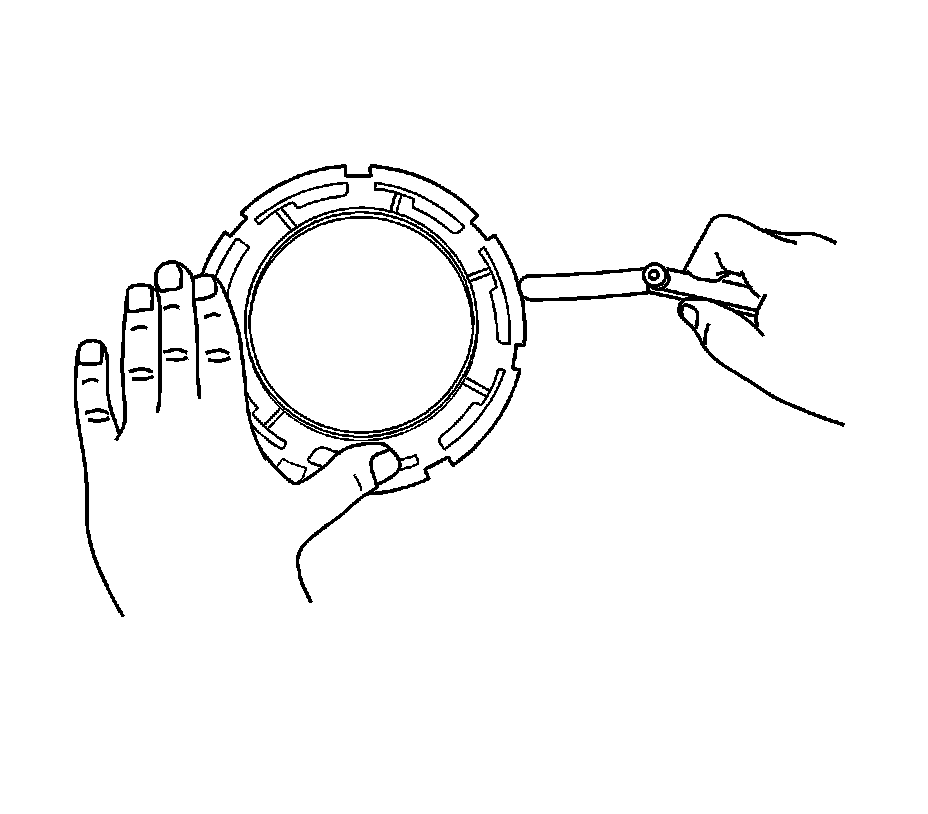 3. Use the J 45722 and a long breaker-bar in order to unlock the fuel sender lock ring. Turn the fuel sender lock ring in a counterclockwise direction.