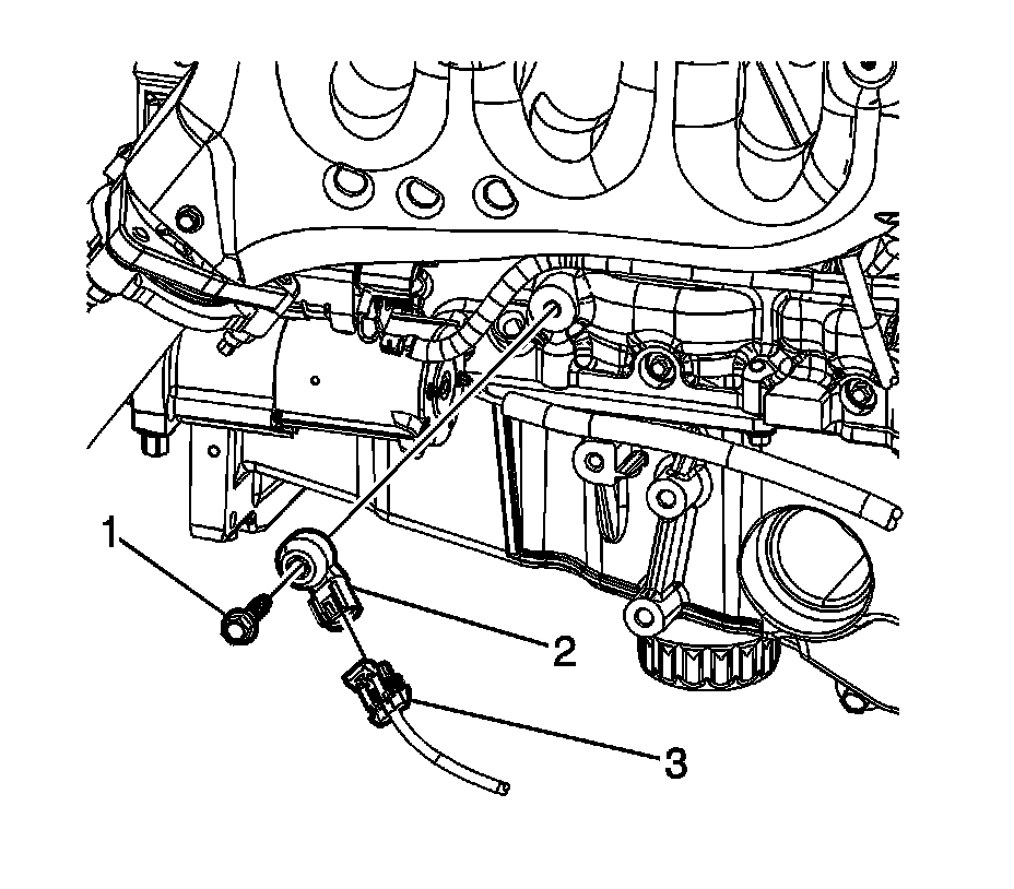 1. Disconnect the electrical connector (3) from the knock sensor (2).
