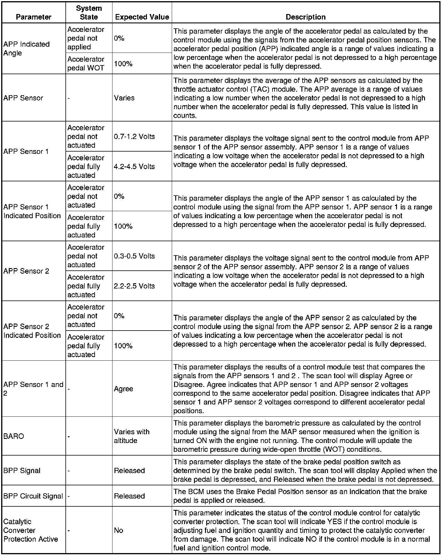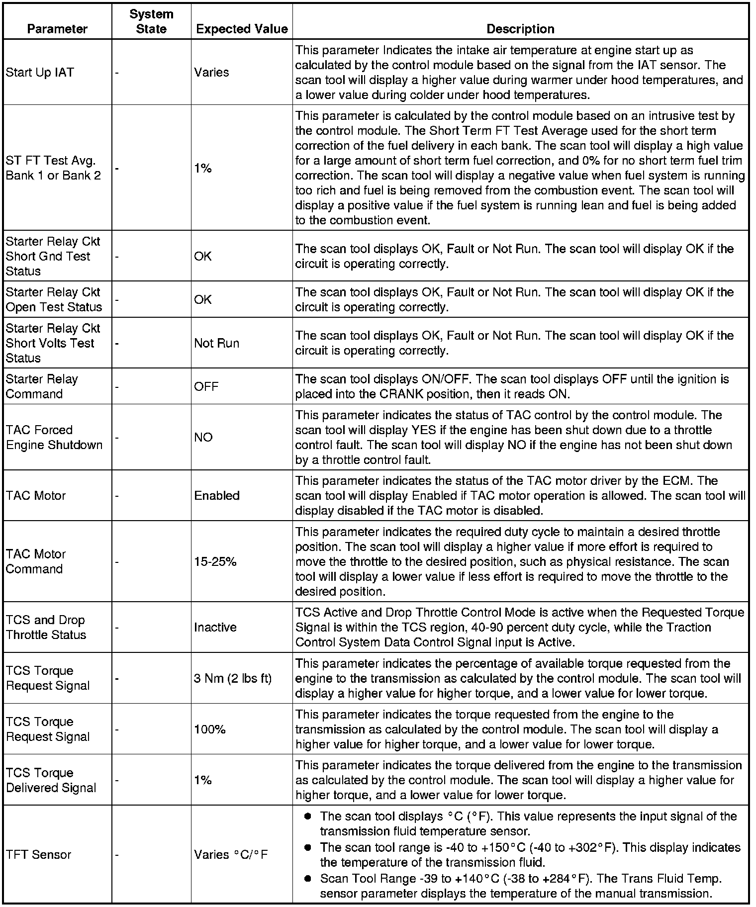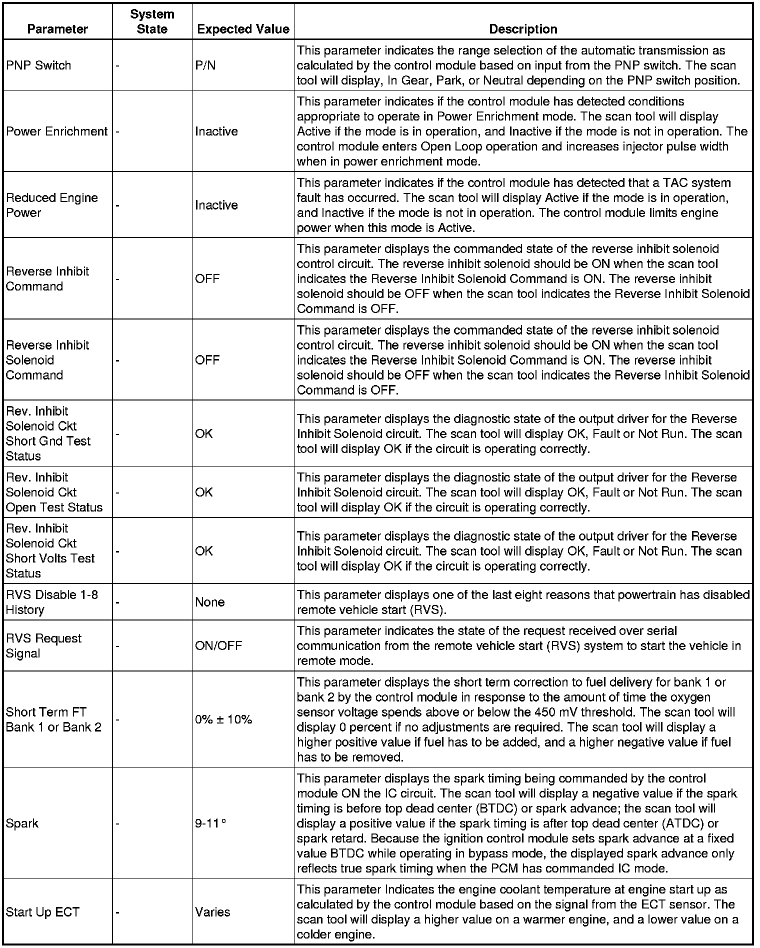 Only the parameters listed below are referenced in this service manual for use in diagnosis.