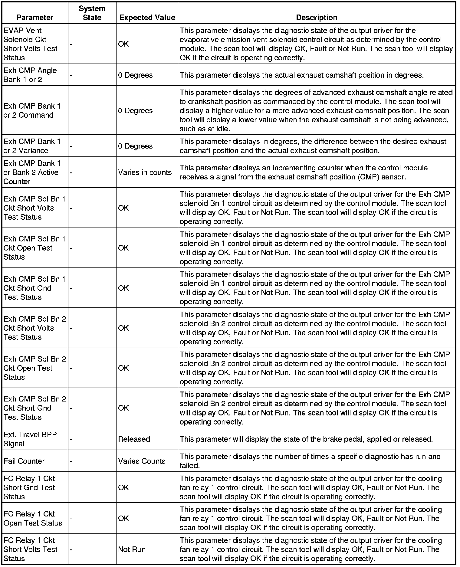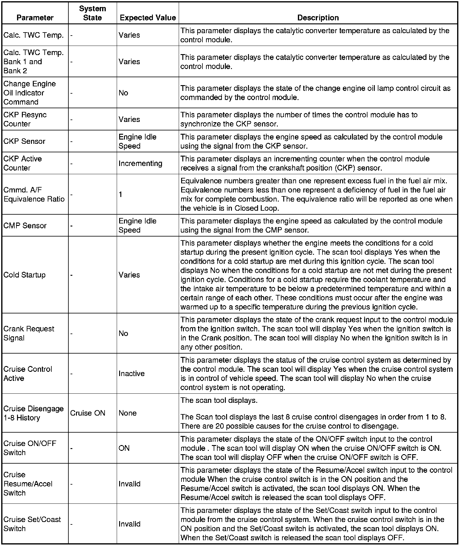 The Engine Control Module Scan Tool Data List contains all engine-related parameters that are available on the scan tool. The list is arranged in alphabetical order. A given parameter may appear in any one of the data lists, and in some cases may appear more than once, or in more than one data list in order to group certain related parameters together.