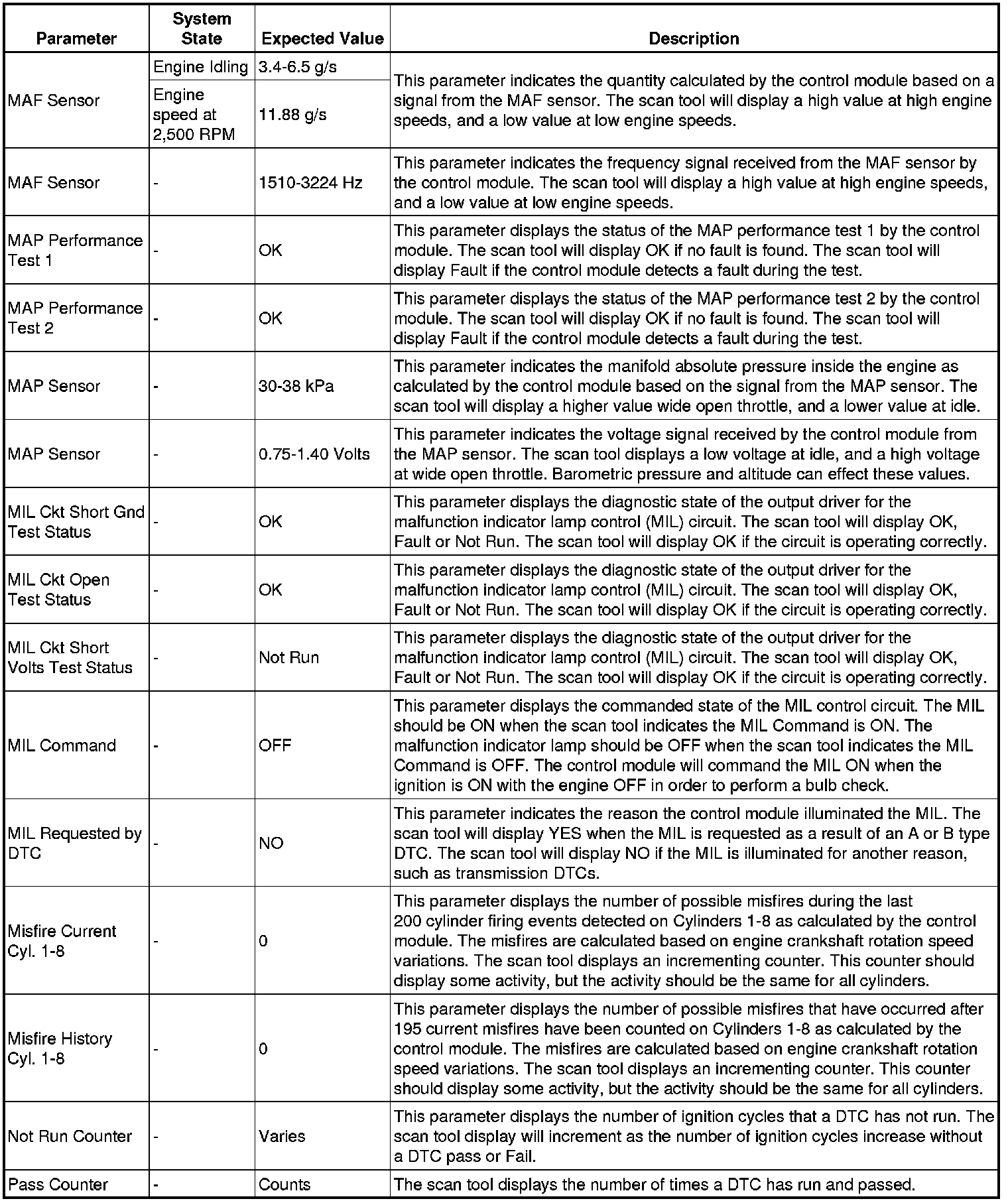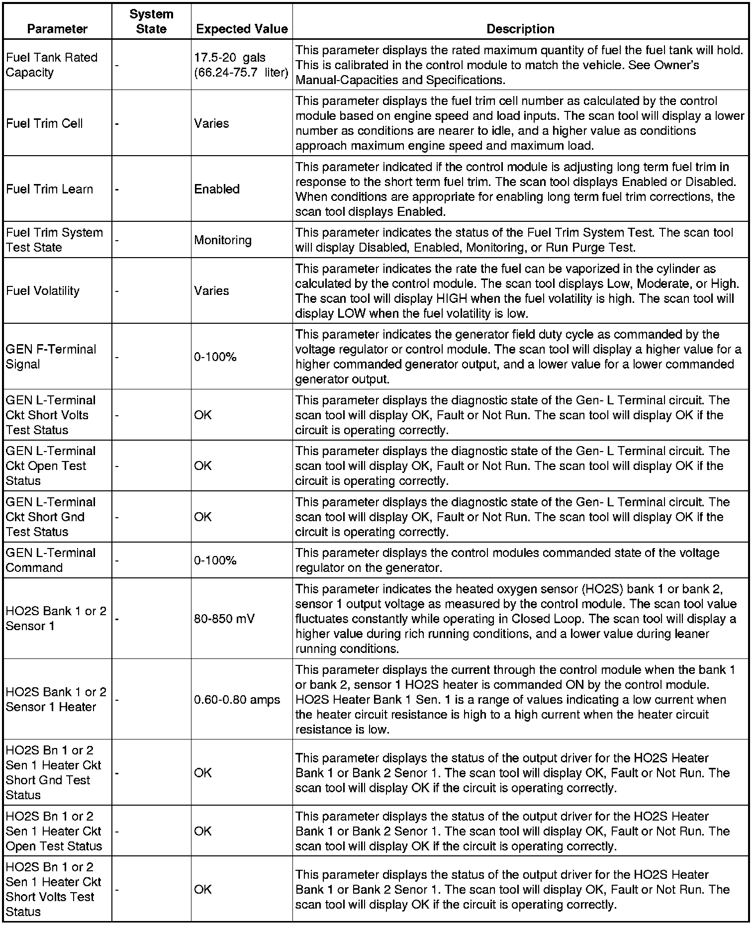 The scan tool values from a properly running engine may be used for comparison with the engine you are diagnosing. The engine scan tool data list represents values that would be seen on a normally running engine.