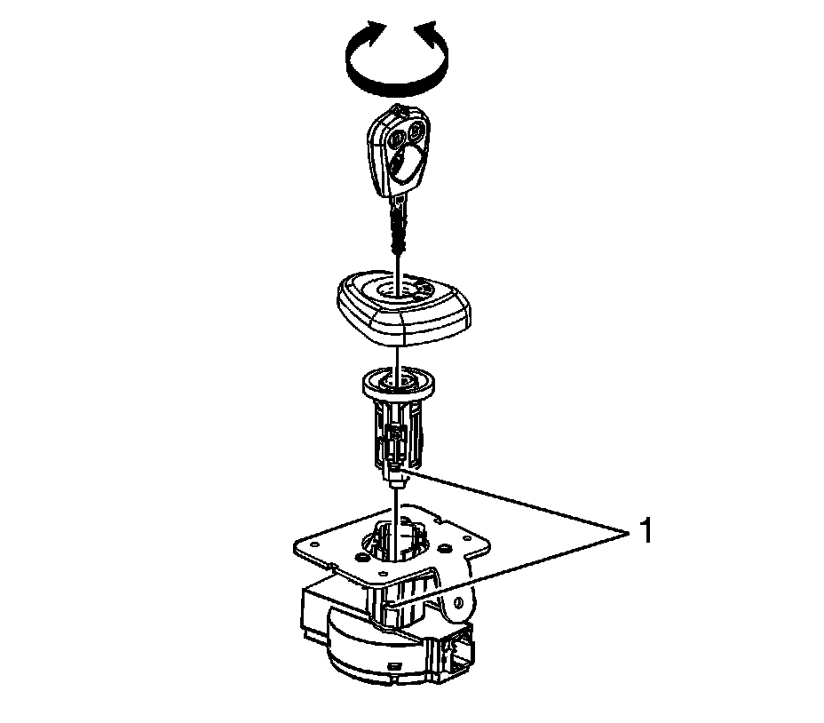 2. Remove the ignition switch and lock cylinder assembly from the console to gain access to the lock cylinder. Refer to Ignition and Start Switch Replacement (Service and Repair).