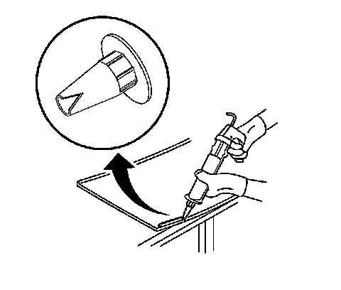 20. Cut the applicator nozzle in order to provide a minimum urethane bead of 8 mm (0.31 in) wide and 16 mm (0.63 in) high.