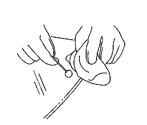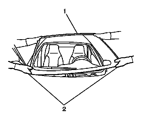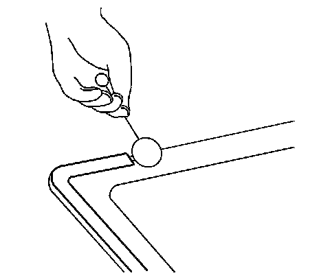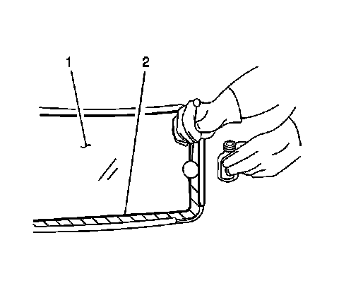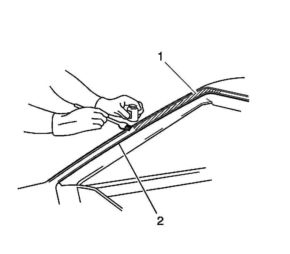 Note: Do not apply the black #3 primer to the existing bead (1) of the urethane adhesive on the pinch-weld flange. Apply the primer only to nicks, scratches or the primed surfaces.