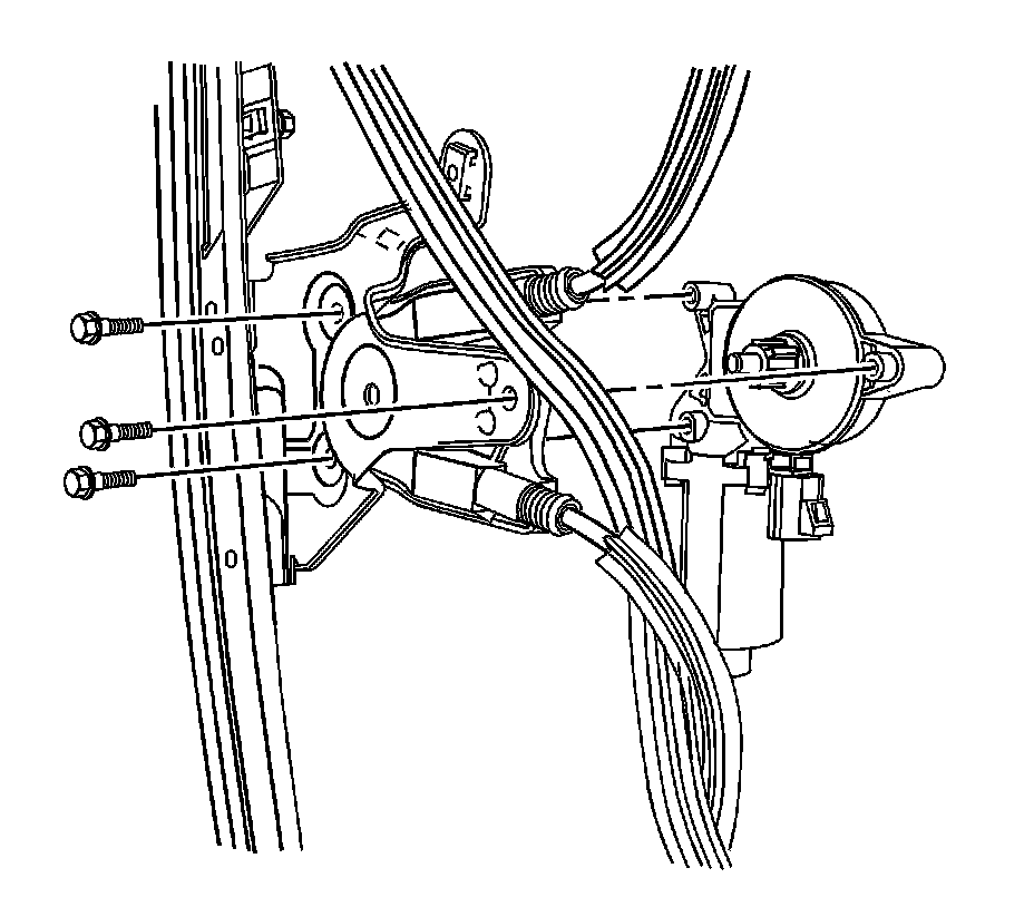 1. Remove the window regulator. Refer to Front Side Door Window Regulator Replacement (Front Side Door Window Regulator Replacement) or Rear Side Door Window Regulator Replacement (Rear Side Door Window Regulator Replacement).