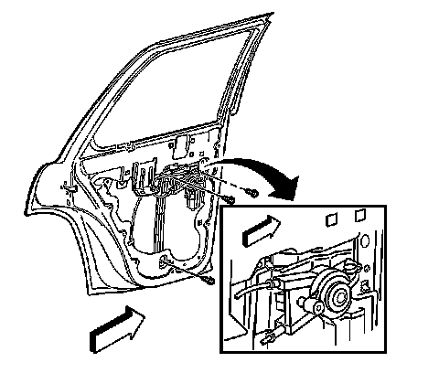 1. Remove the door trim panel. Refer to Rear Side Door Trim Panel Replacement (Rear Side Door Trim Panel Replacement).