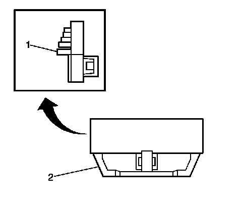 Note: The windshield lower supports (1) have molded in locks with an adhesive strip (2) on the back side. If the windshield lower stops have been removed, they must be replaced.