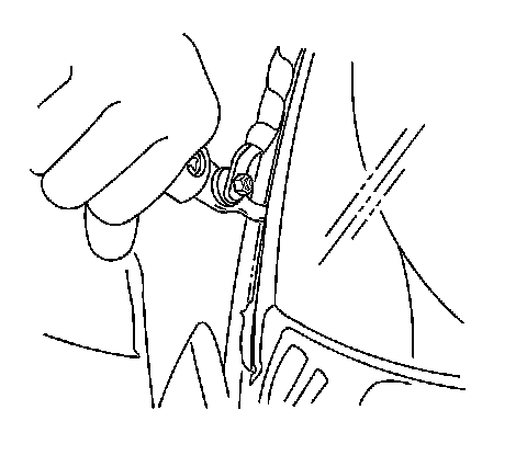 4. Install the push-pin retainers to the front door sealing weatherstrips located at the base of the windshield pillar.