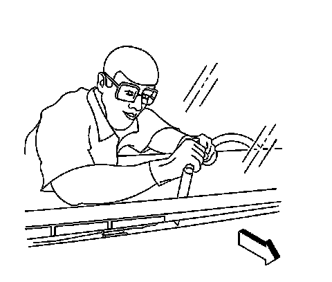 13. Remove the bottom of the windshield from the urethane adhesive using a long utility knife or similar tool. Keep the cutting edge of the utility knife against the glass. Do this from inside the vehicle.