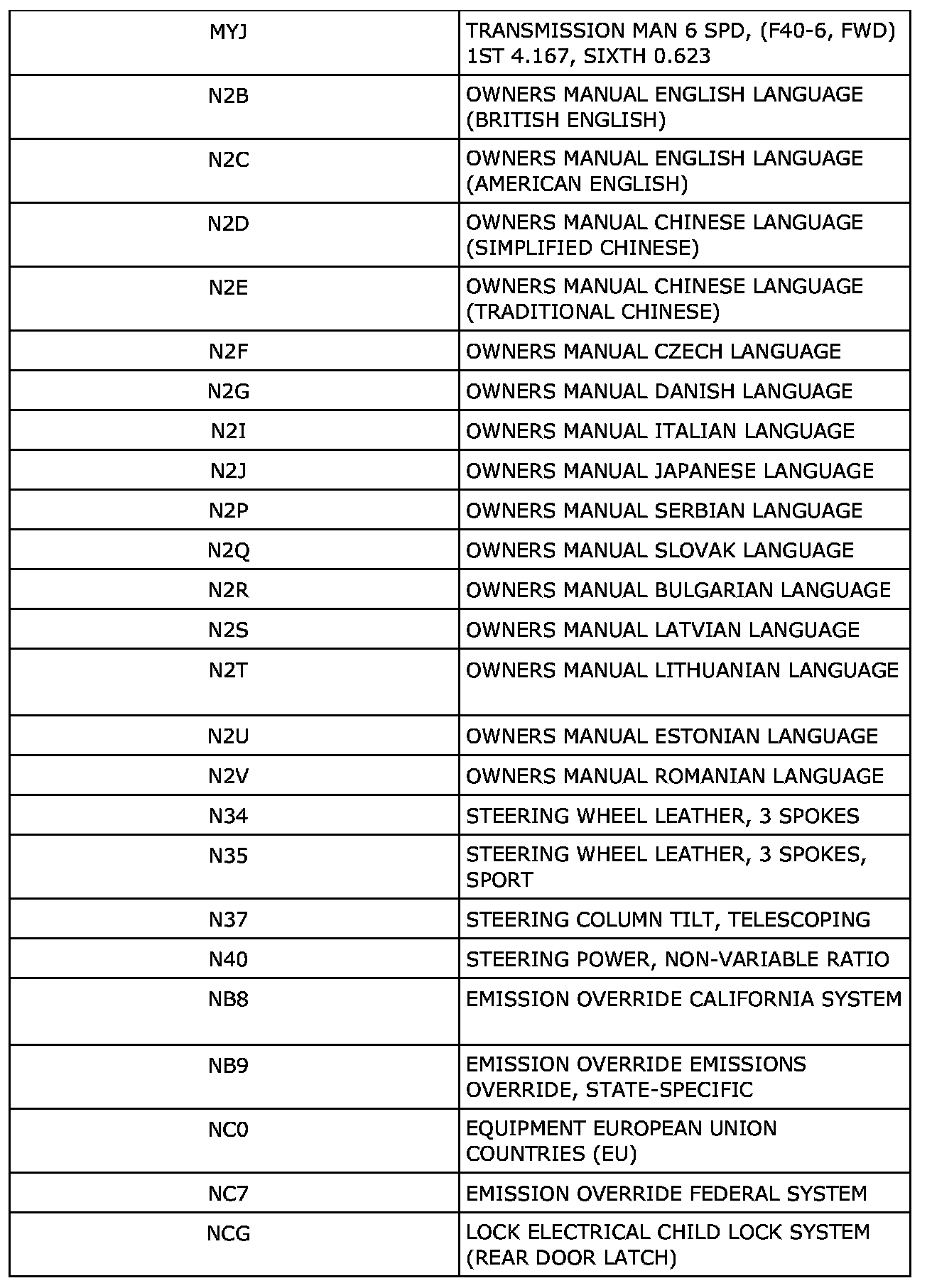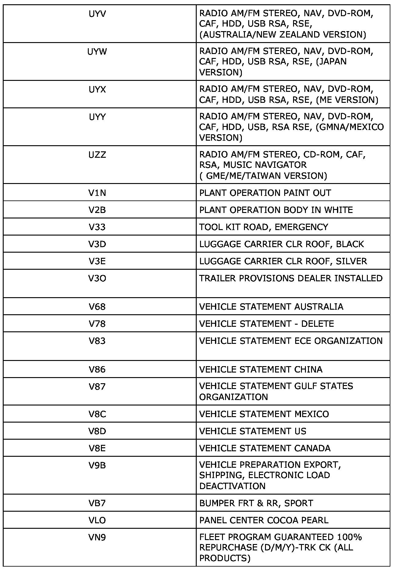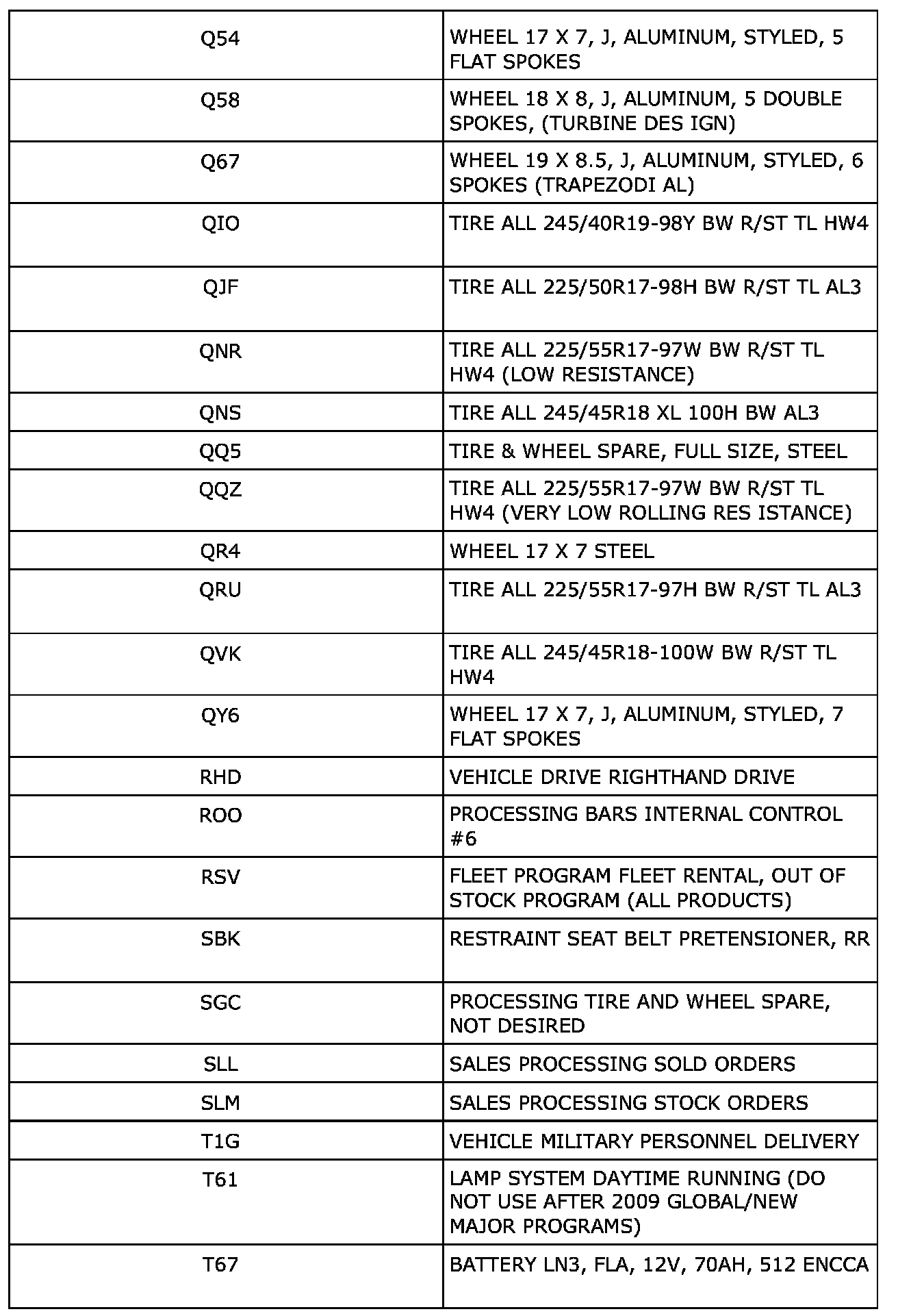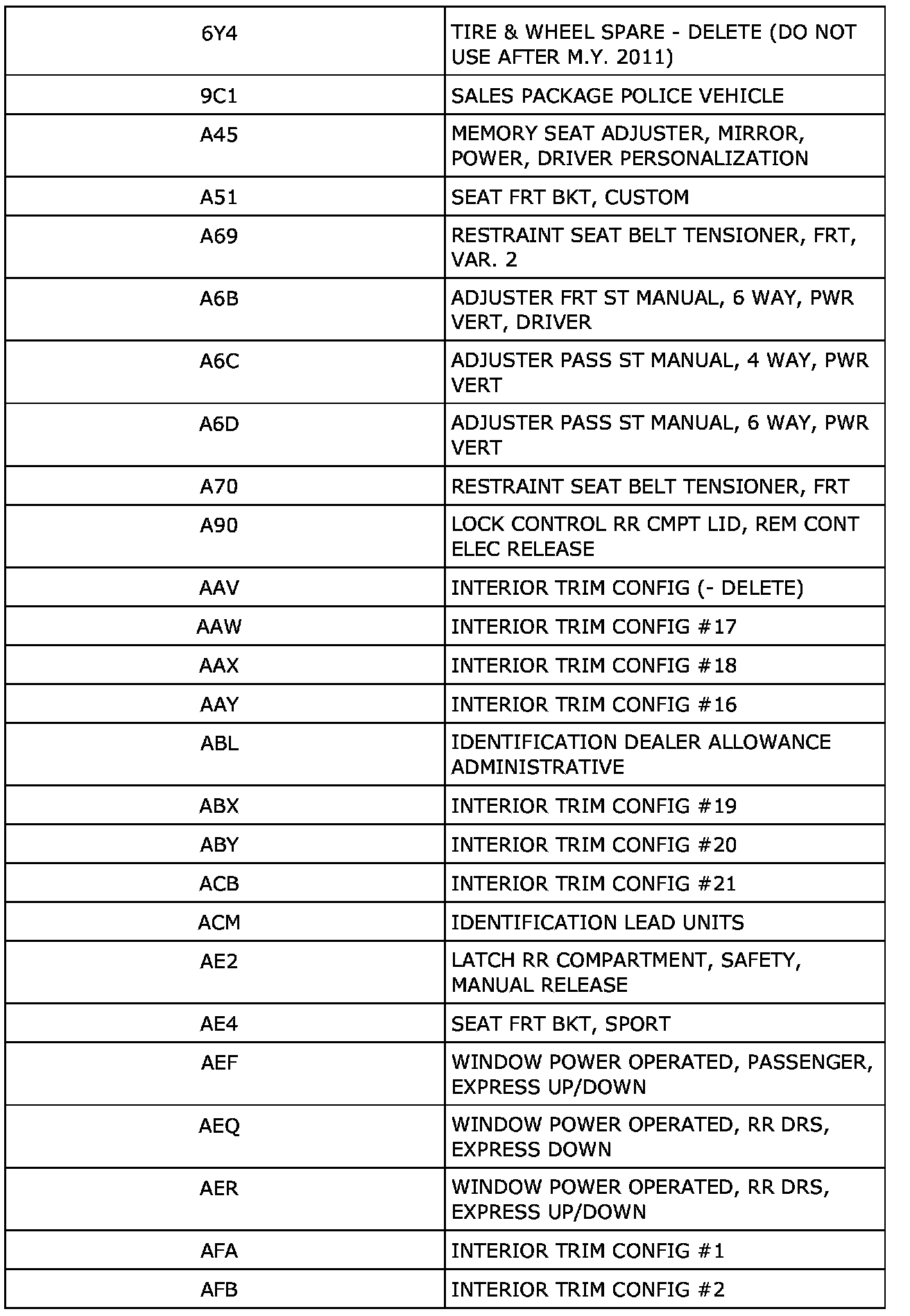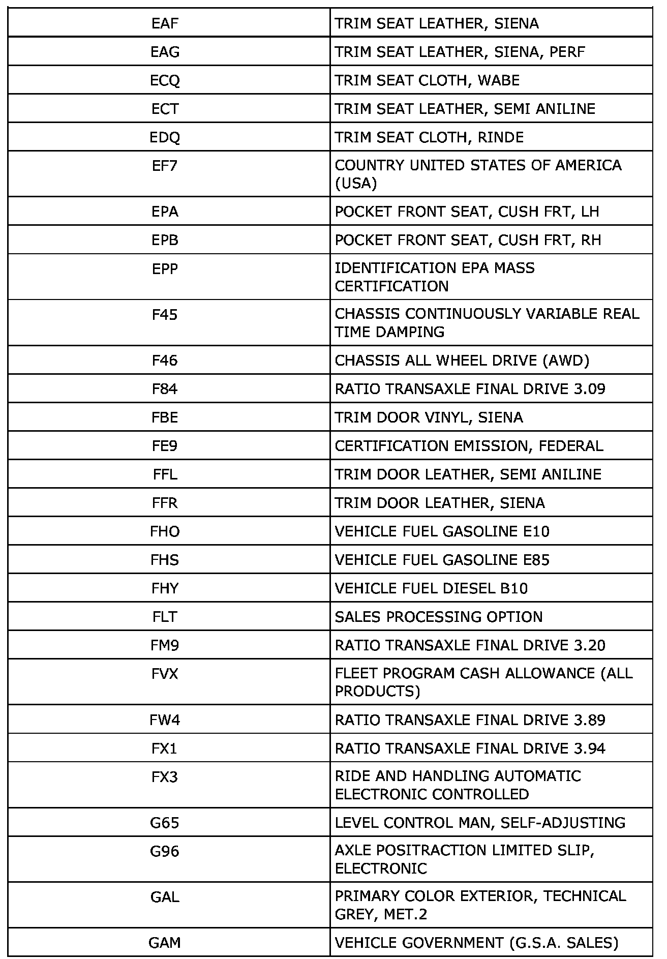 The following table provides the description of the Regular Production Option (RPO) codes that are available on the vehicle. The vehicle's RPO list is printed on the Service Parts Identification Label.