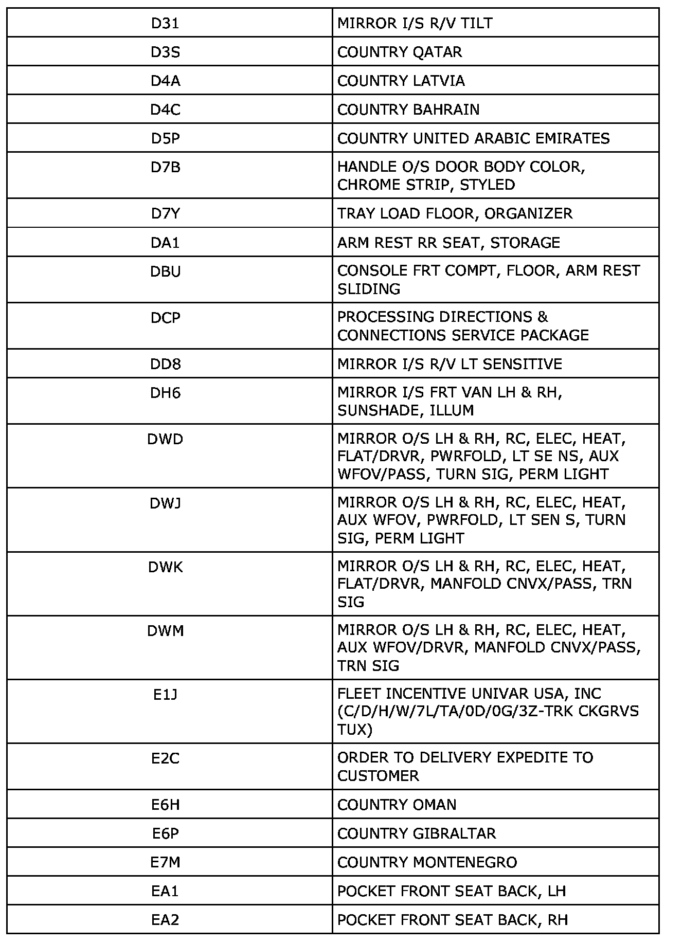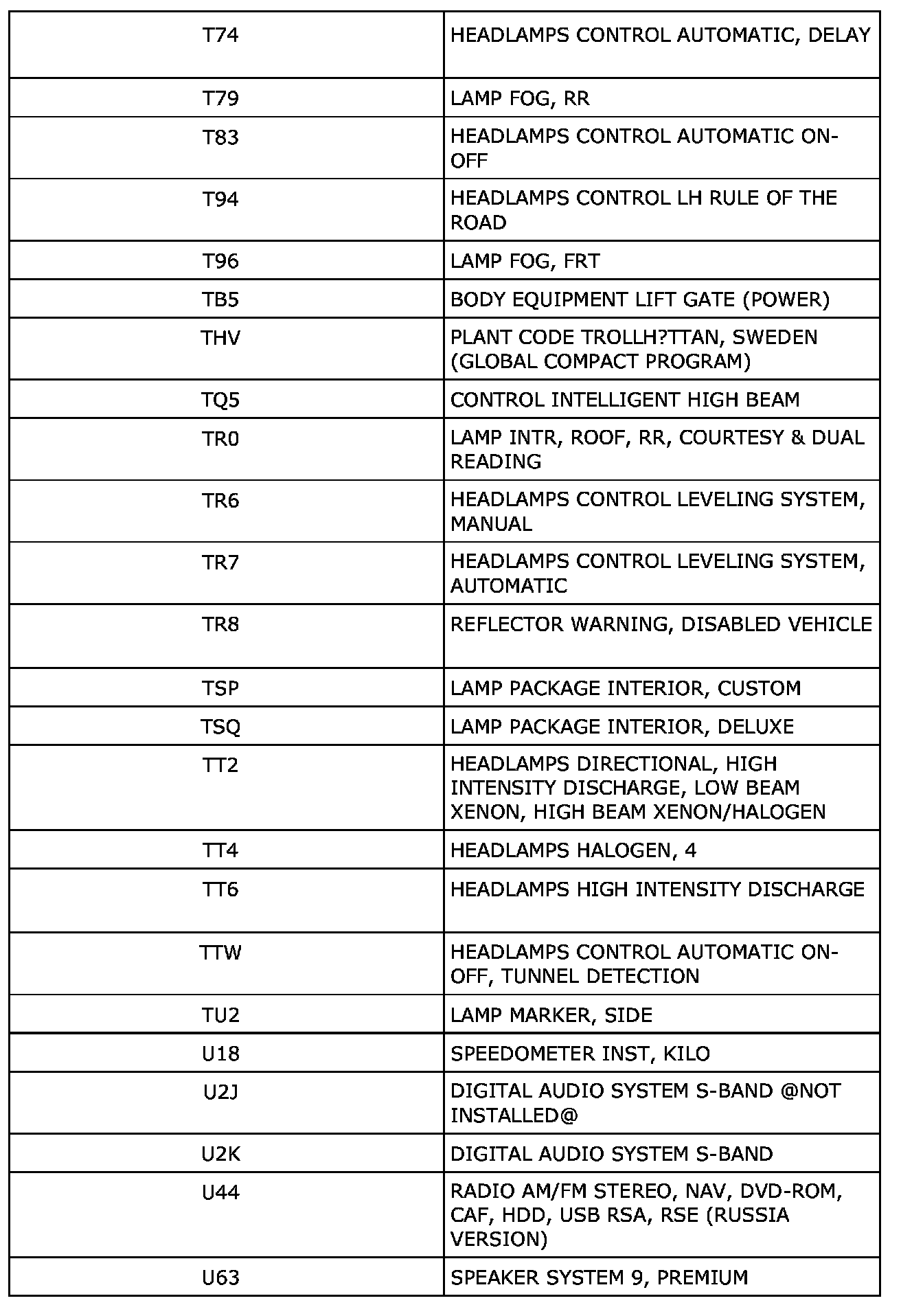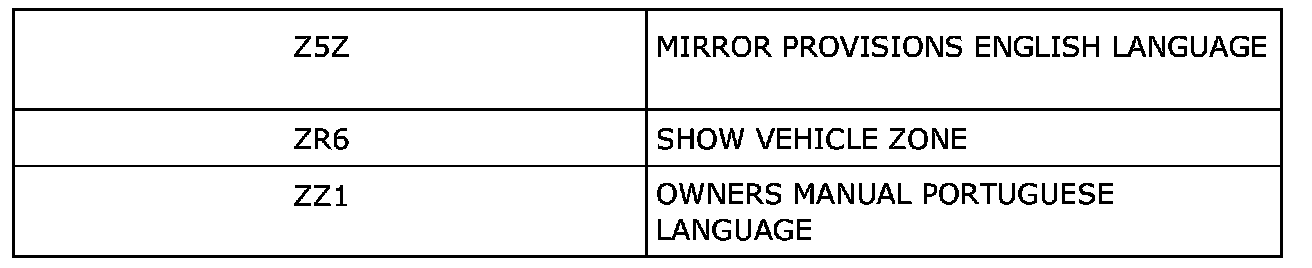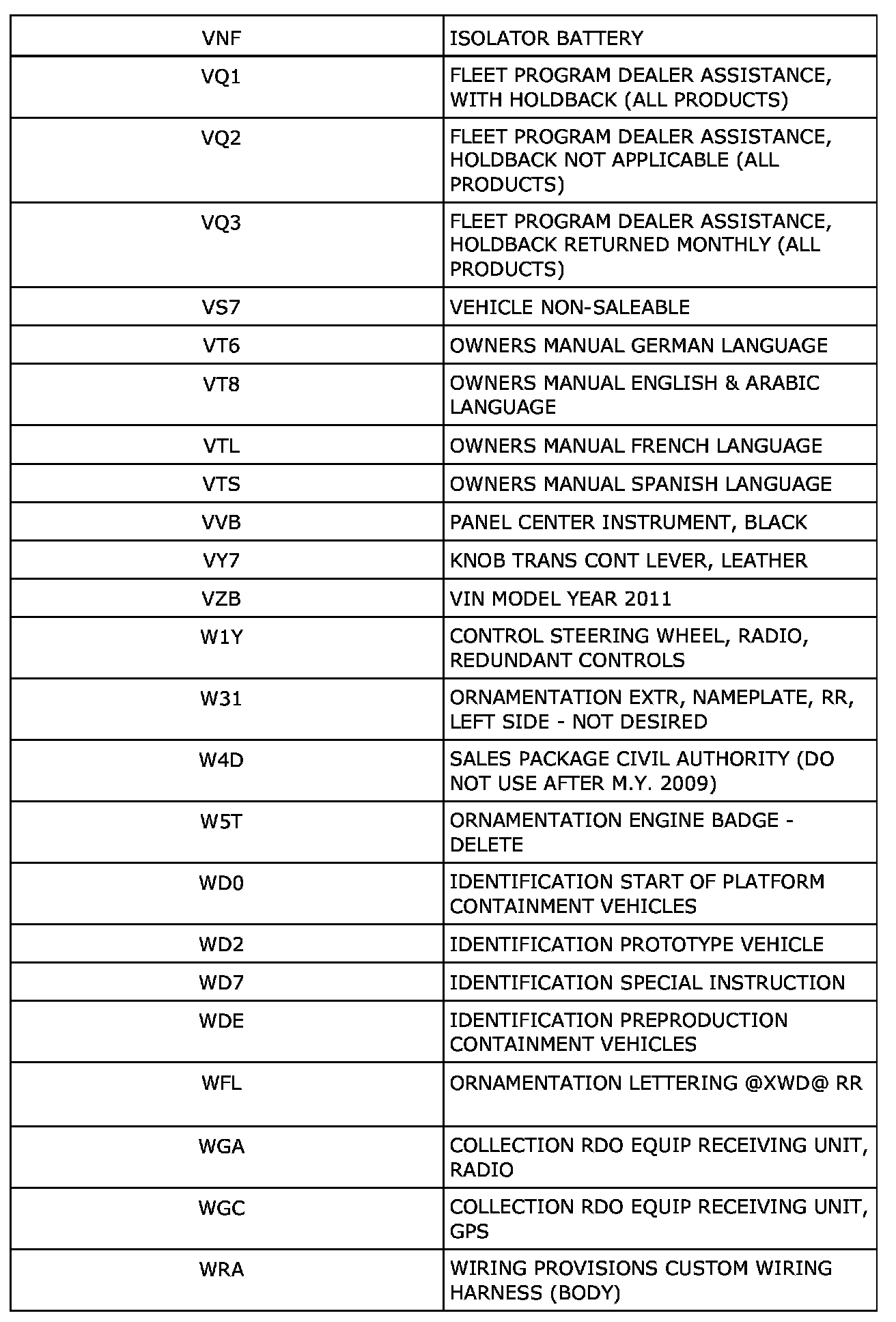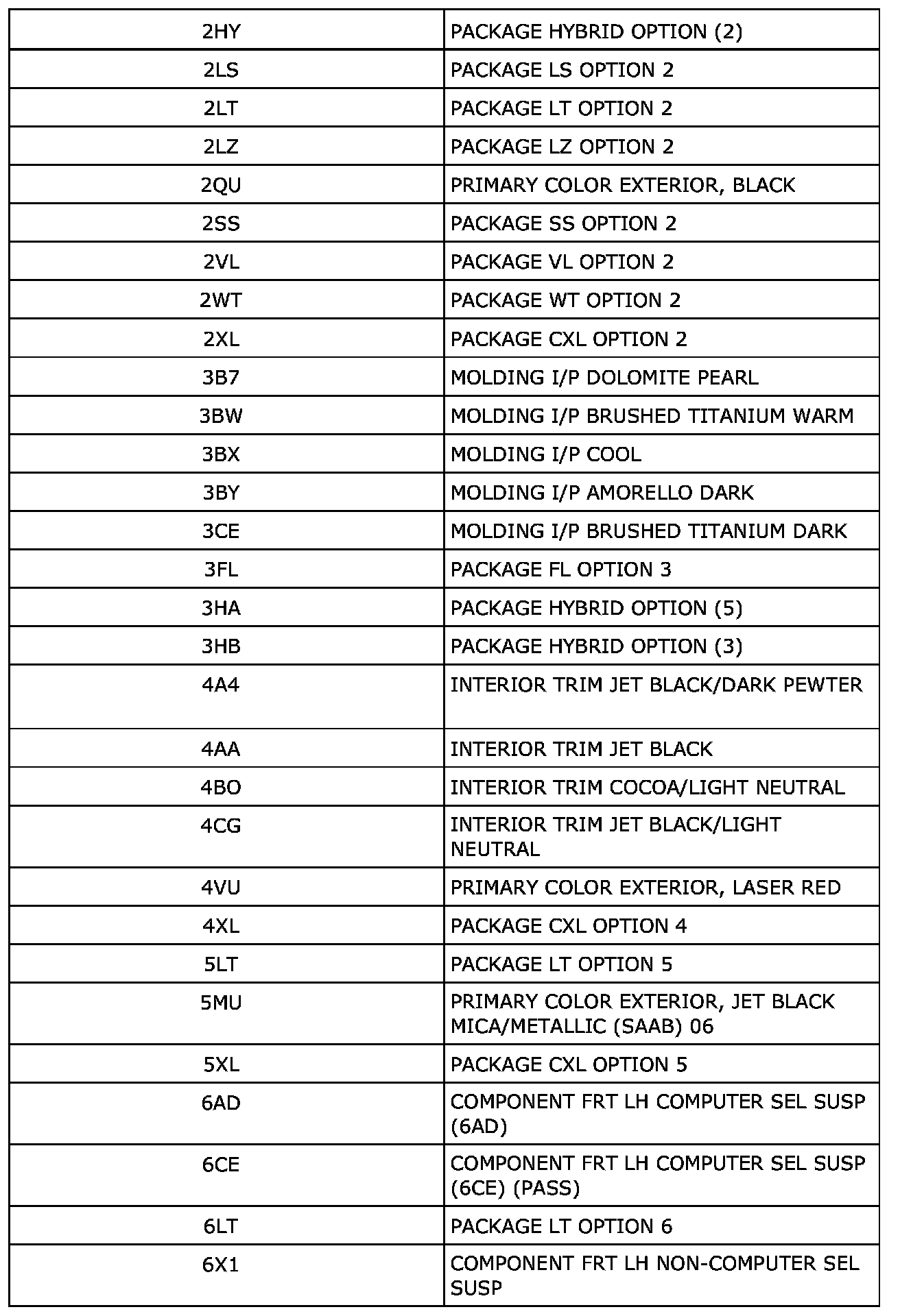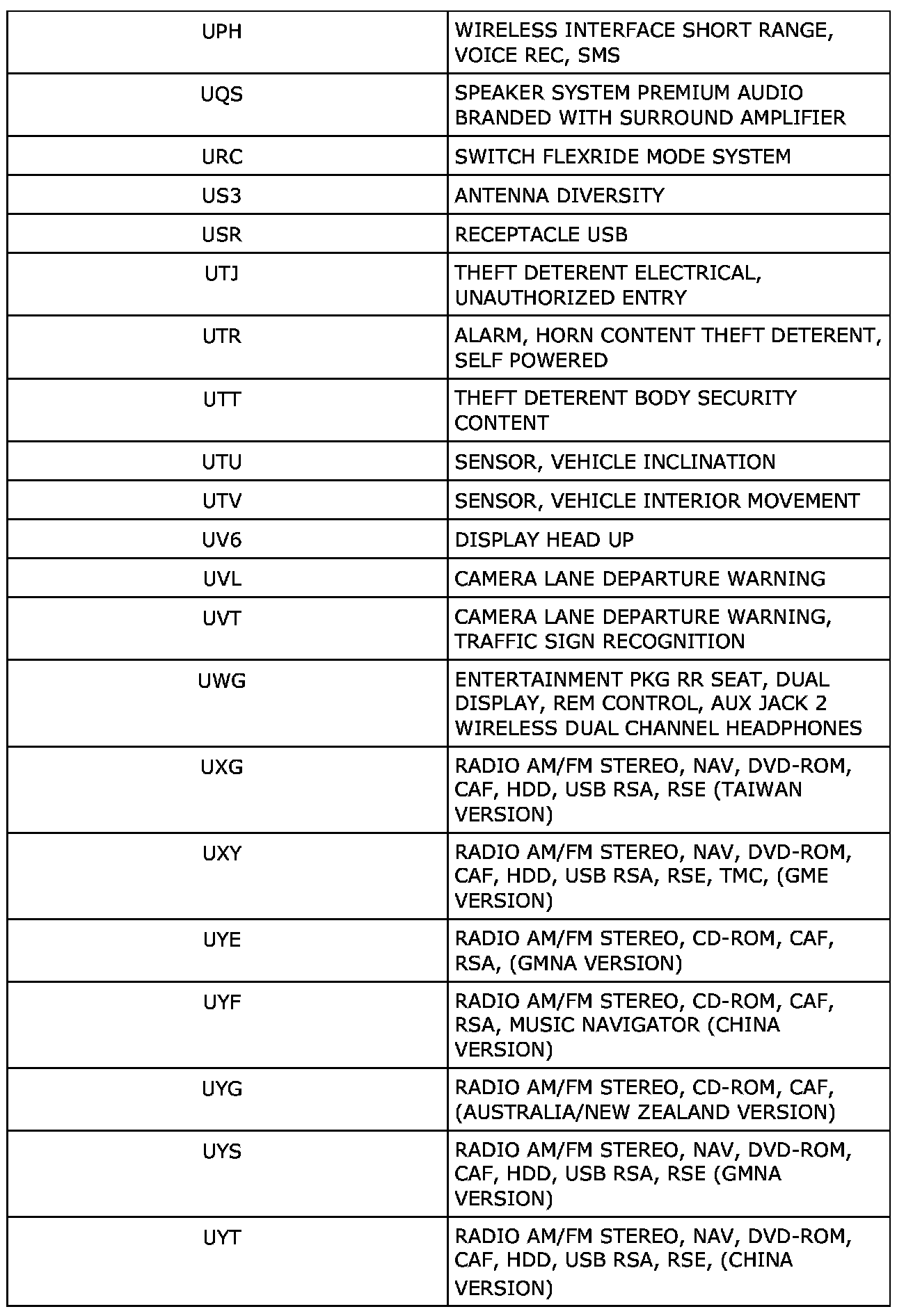 The following table provides the description of the Regular Production Option (RPO) codes that are available on the vehicle. The vehicle's RPO list is printed on the Service Parts Identification Label.