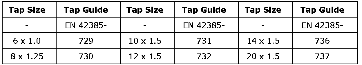 If the threaded hole being repaired has a base surface perpendicular to the hole centerline, tapping guides are available to aid in tapping the hole.