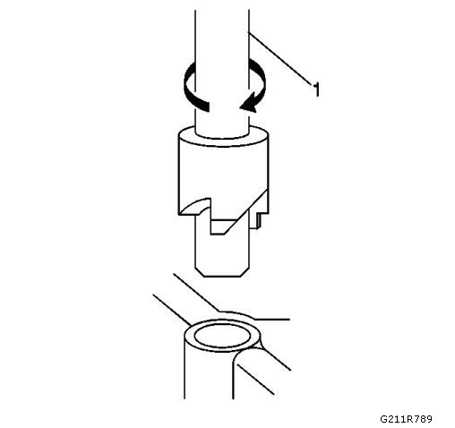 Continue to rotate the driver installation tool (1) until the top of the threaded section (2) is level with the top of the insert (3).