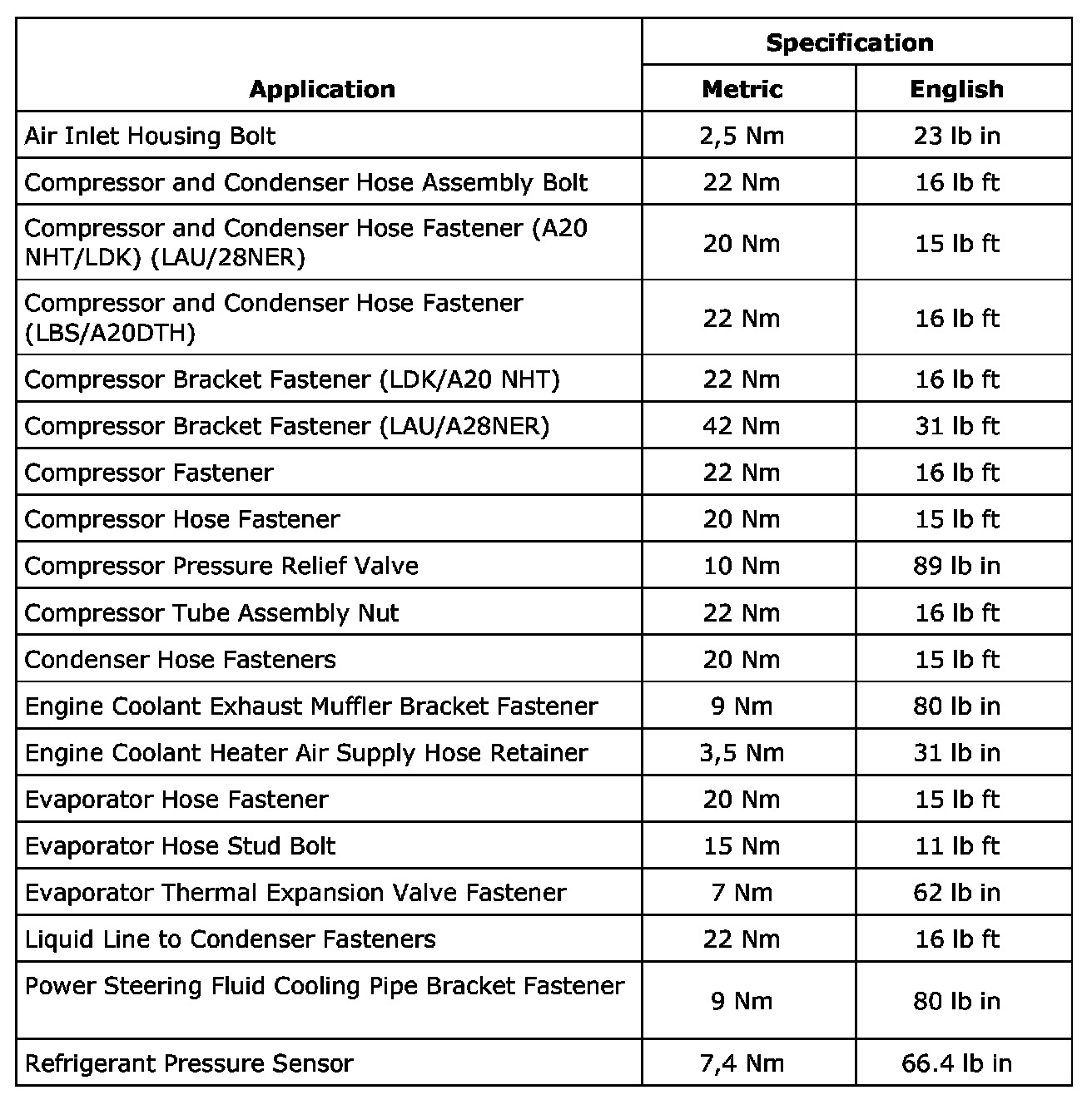 Fastener Tightening Specifications
