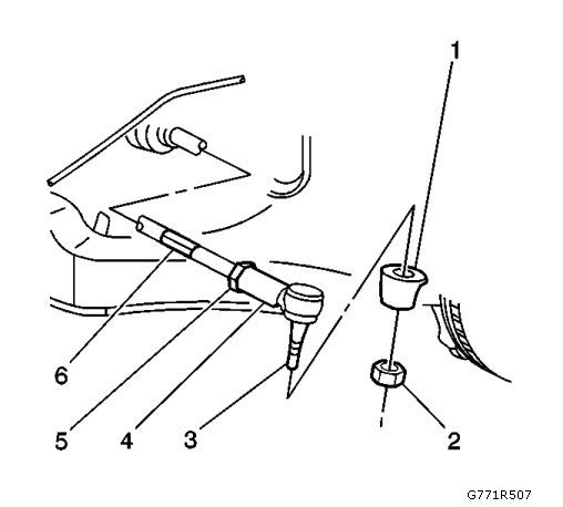 3. Adjust the toe to specification by turning the adjuster (6). Refer to Wheel Alignment Specifications.