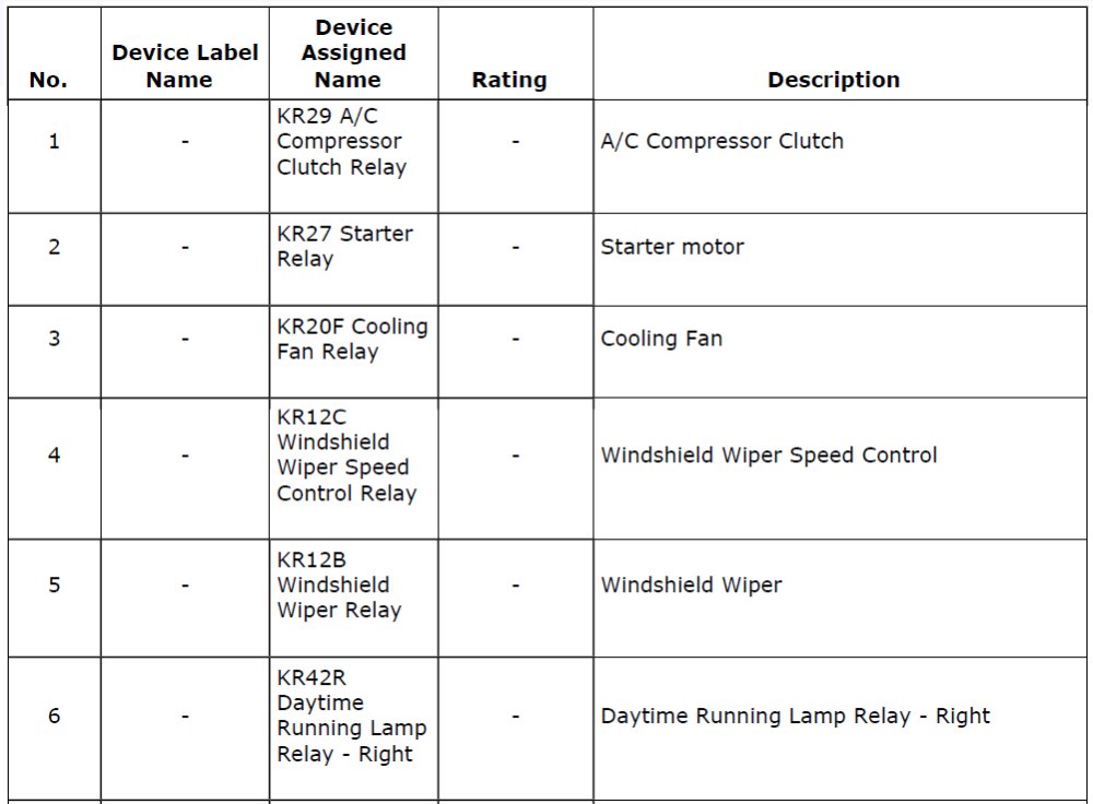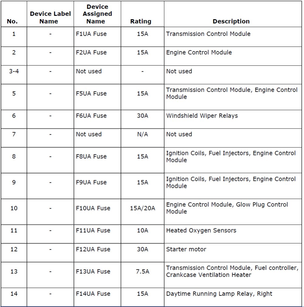 Fuses 1 - 14