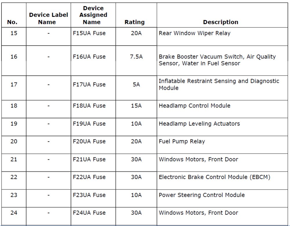 Fuses 15 - 24