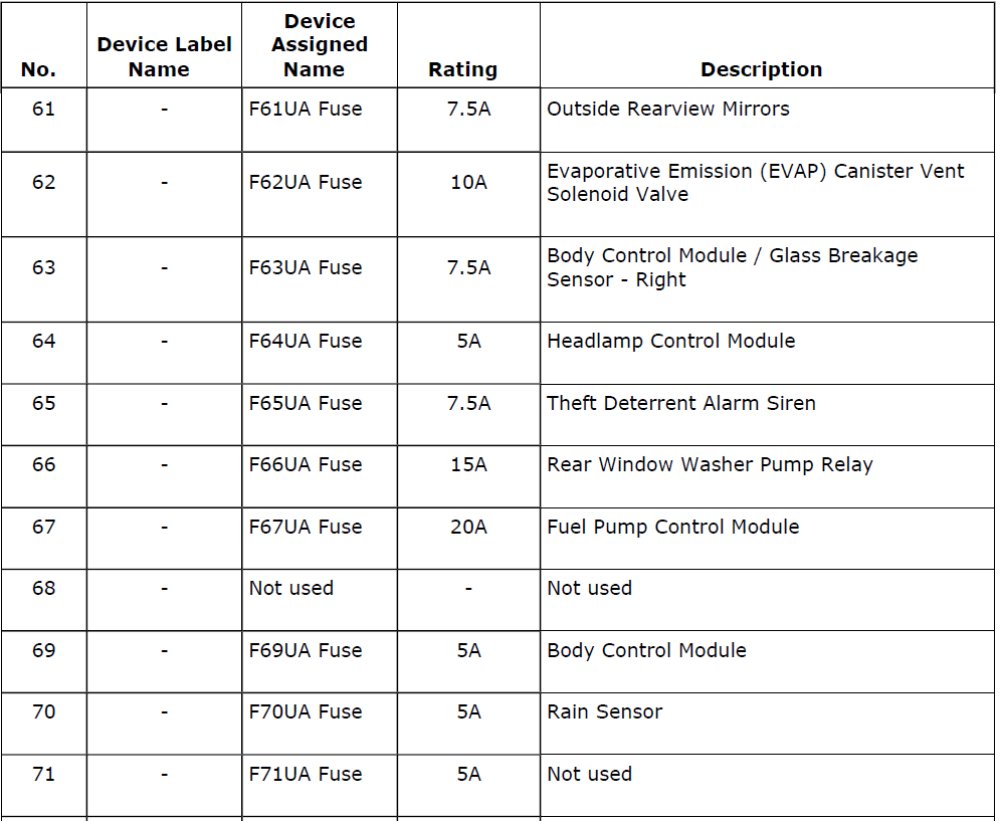 Fuses 61 - 71