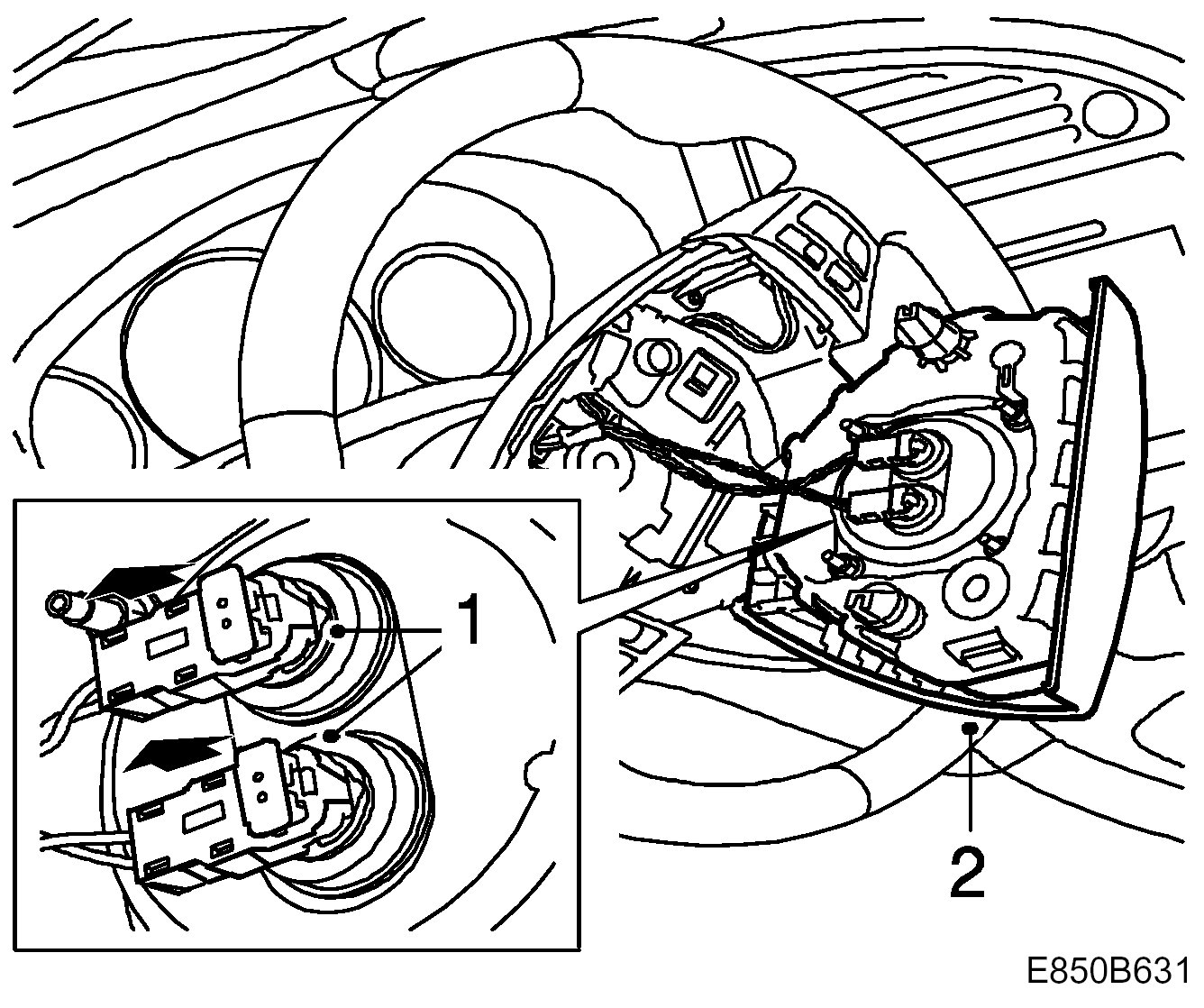 12. Deploy the module fully before disposal. See WebWIS - 9-5 (9650) - 8. Body - Airbag SRS - Adjustment, replacement - Airbag module, handling and disposal.