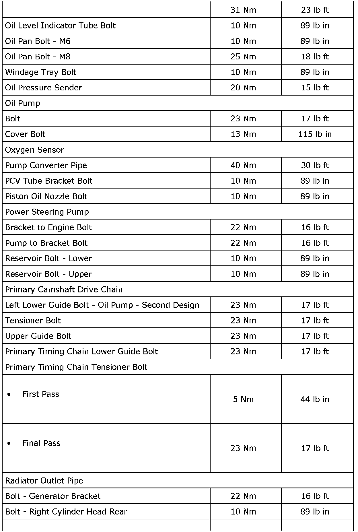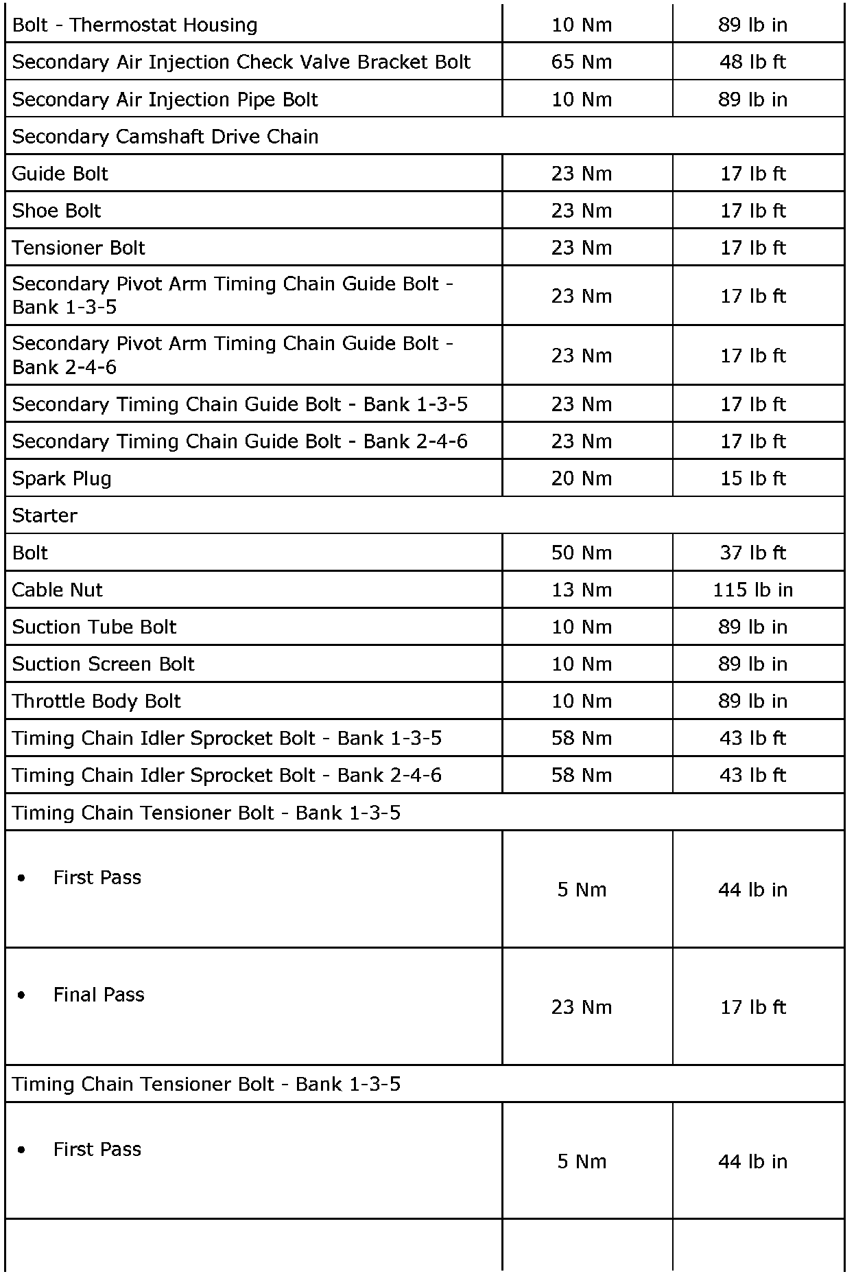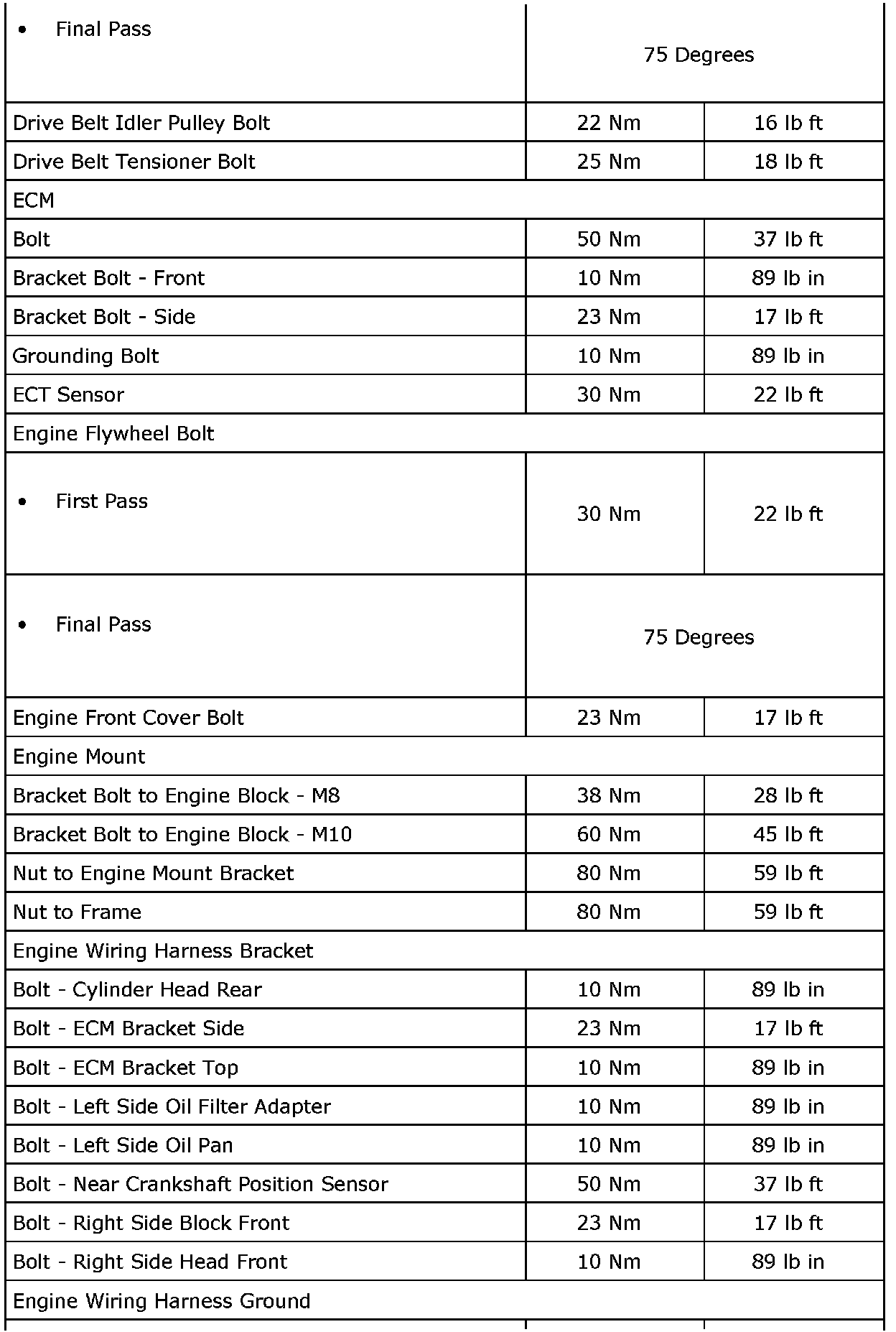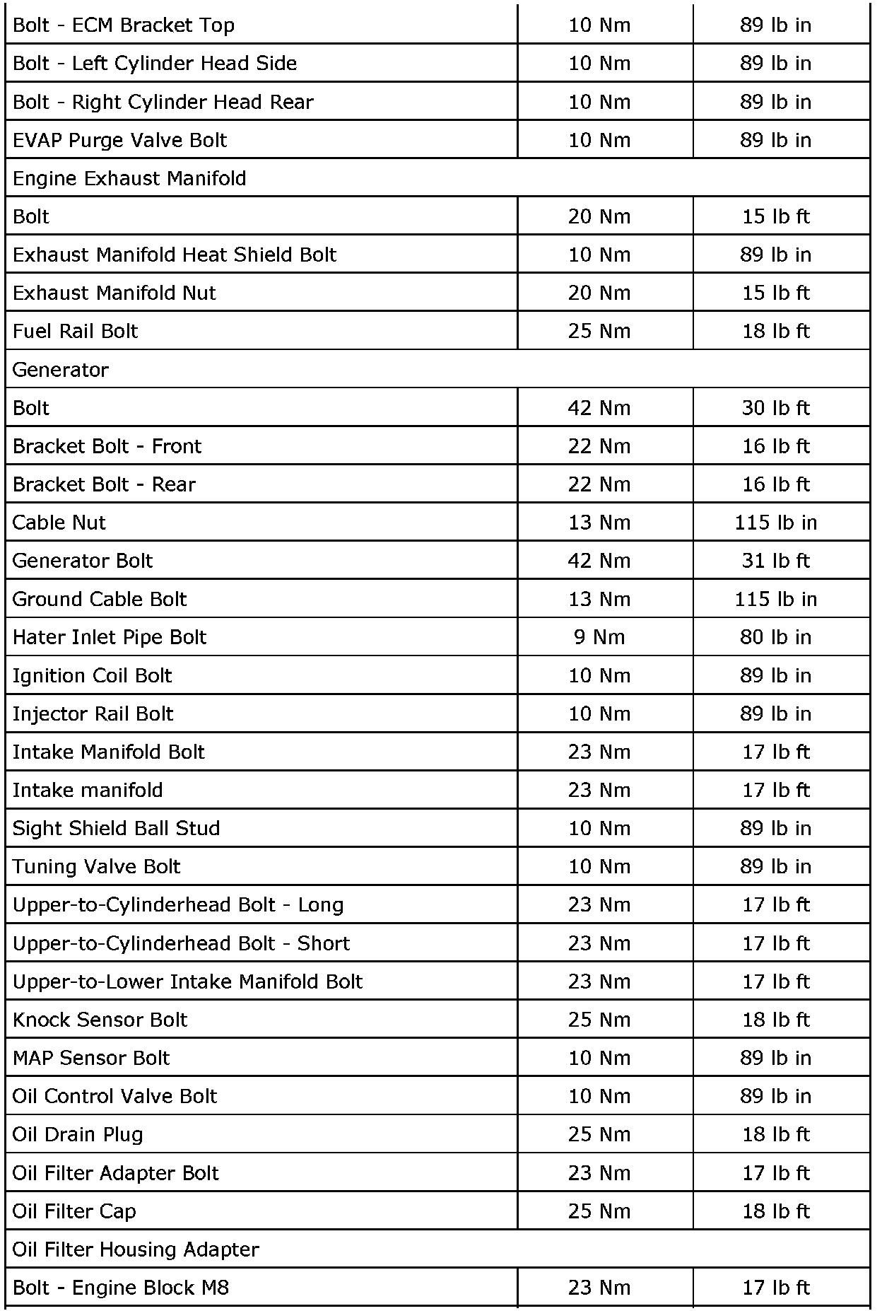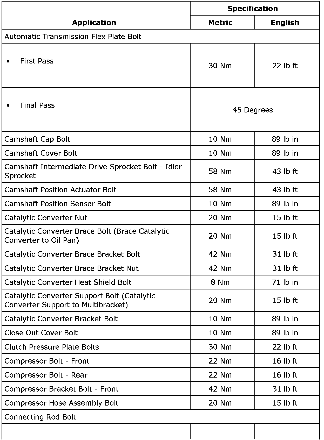 Fastener Tightening Specifications (LAU or LBW)