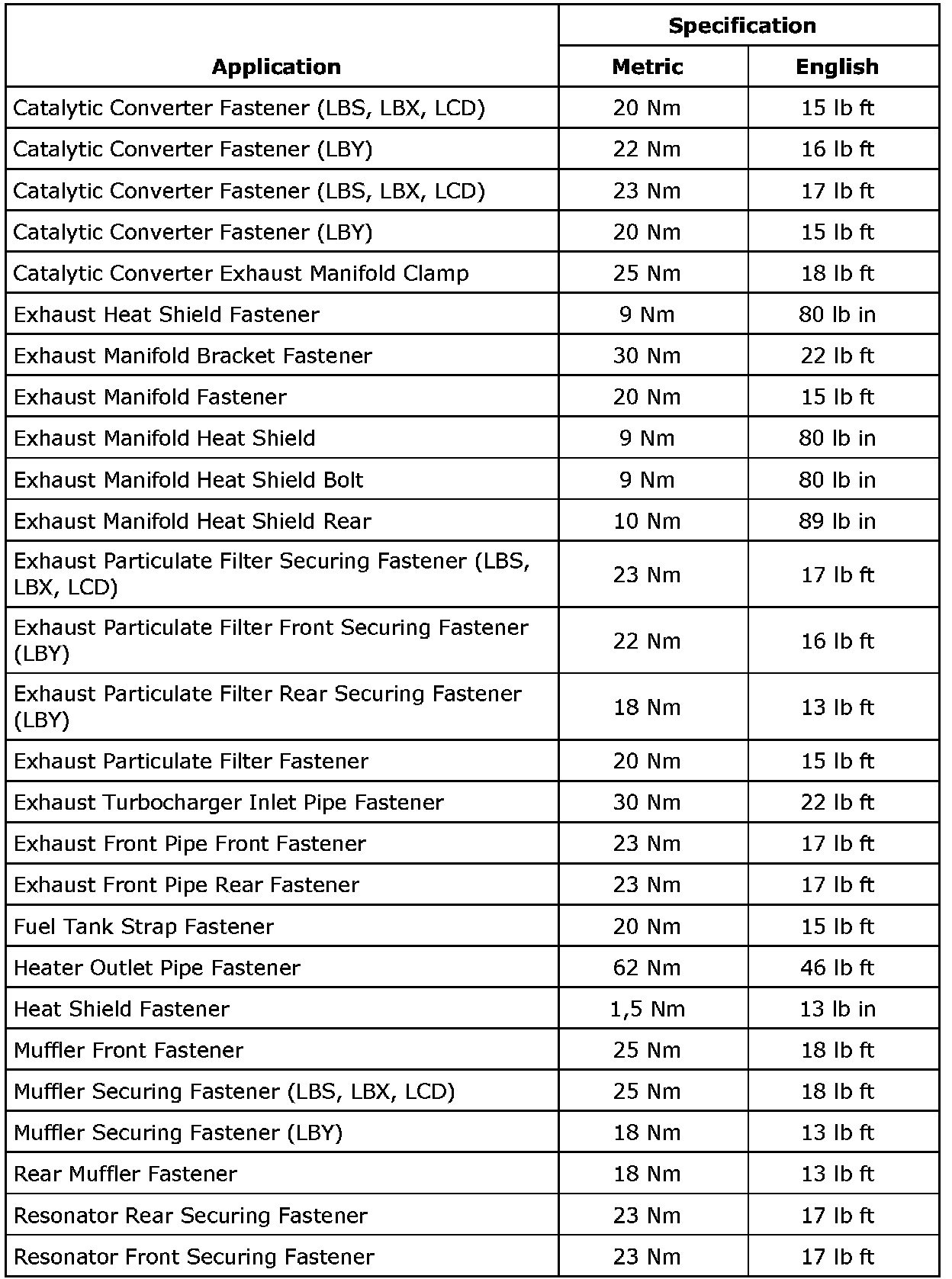 Fastener Tightening Specifications