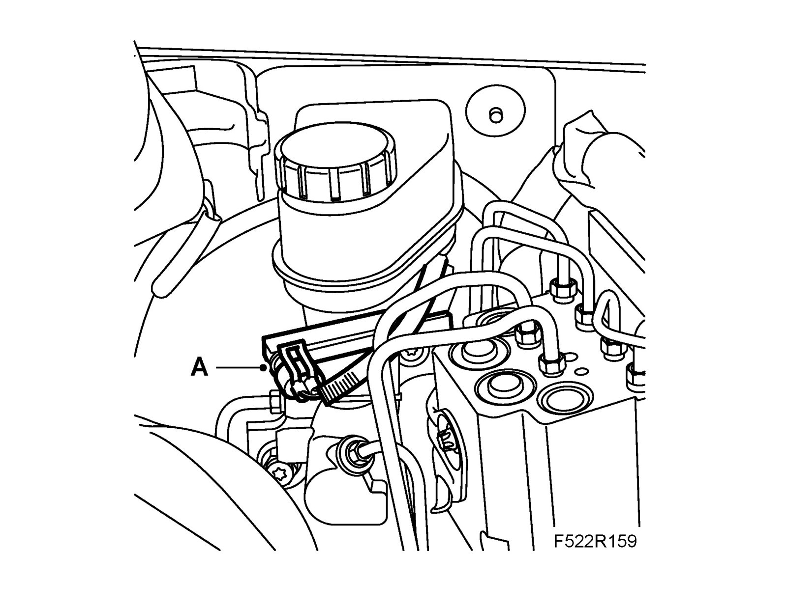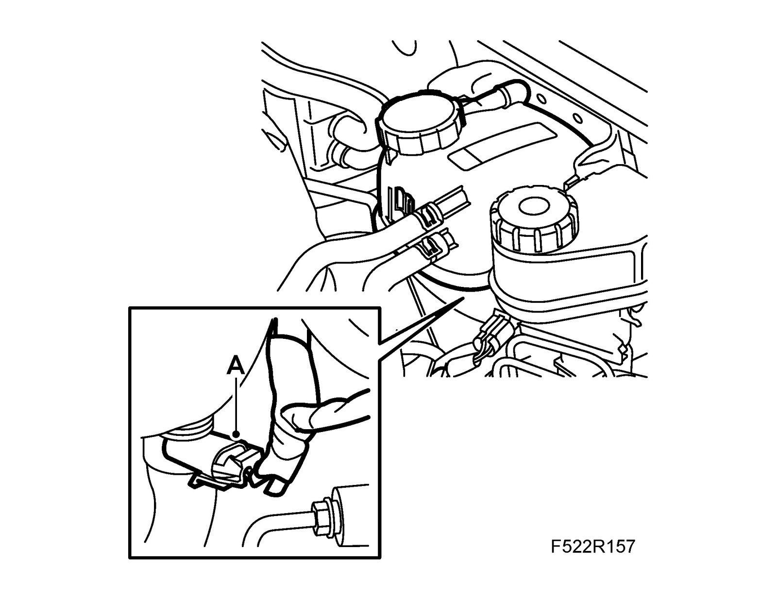 6. Unplug the connector (A) for the brake fluid reservoir's level sensor.