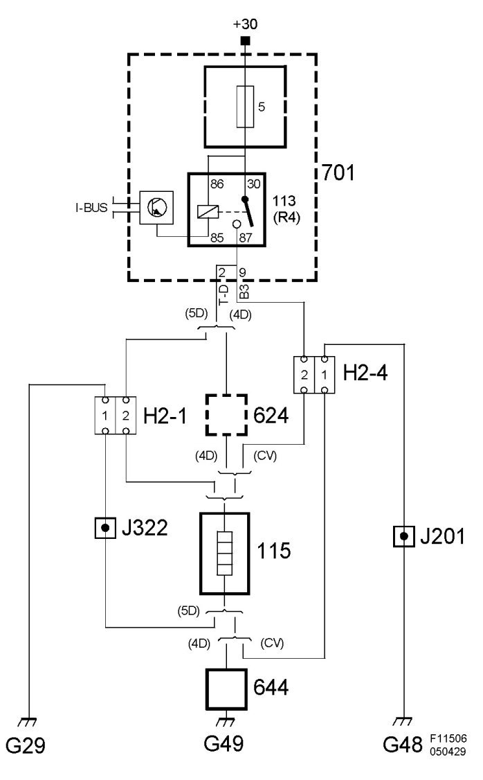 Electrical heating coil is supplied with voltage B+ from REC pin 9(B3) (relay, electrically heated rear window).