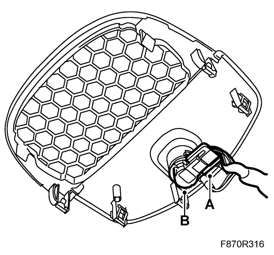 1. Remove the speaker grille (A). Use 82 93 474 Removal tool.