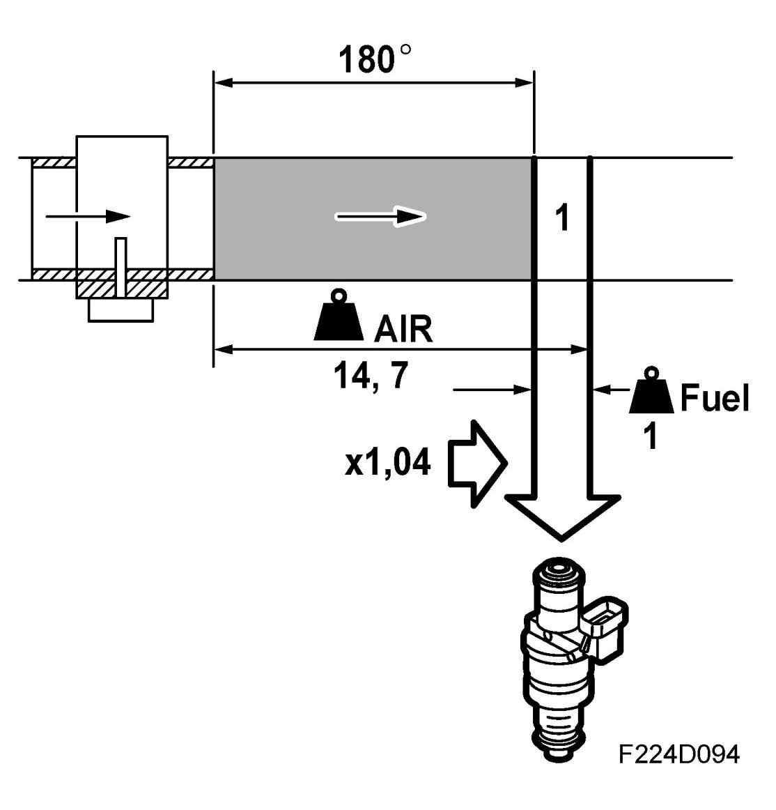 A sudden load increase causes the mg air/combustion to increase rapidly and it is well known that petrol engines then require a richer mixture. This is because fuel is deposited on the walls of the intake manifold due to the increase in pressure there, and the wet-film thickness increases. The fuel quantity used here must be replaced by a slightly larger quantity of injected fuel, which is achieved by increasing the correction factor by a few percentage points. For example, the correction factor can be increased from 1.00 to 1.03, which gives 3% more fuel.