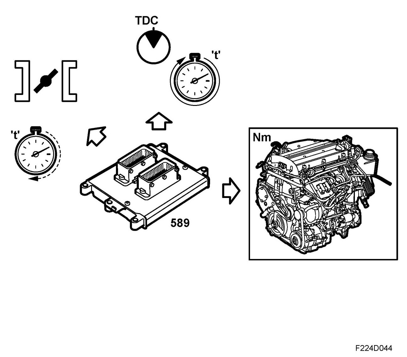 Engine torque control is used to ensure the correct engine torque is supplied by the engine. ECM controls engine torque by regulating the air mass per combustion and also by regulating the ignition timing.